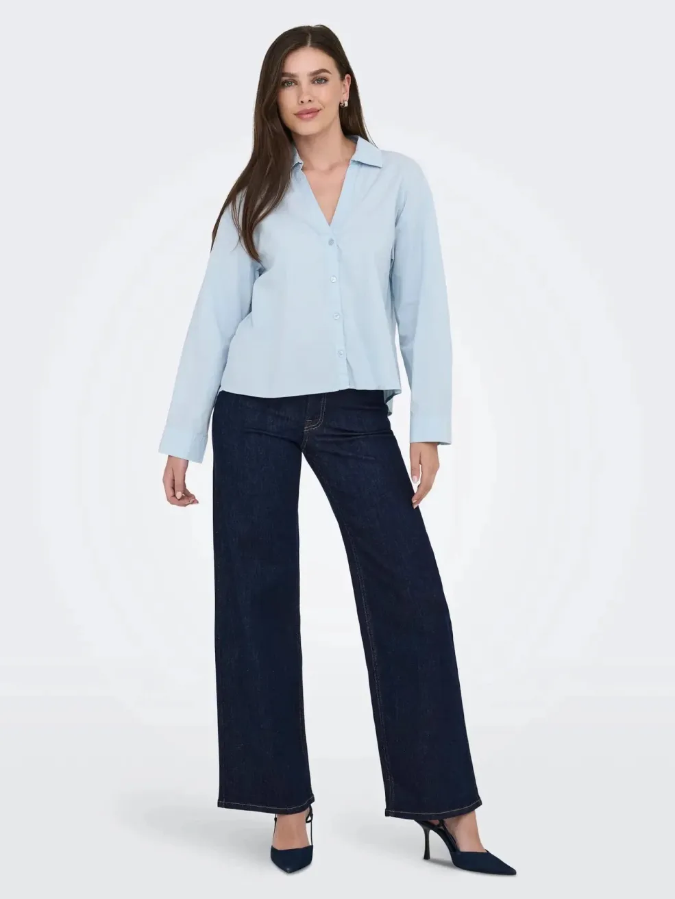 Mørkeblå denimjeans fra JDY med vide ben og høj talje. Jeansene har en løs pasform og går til anklerne.