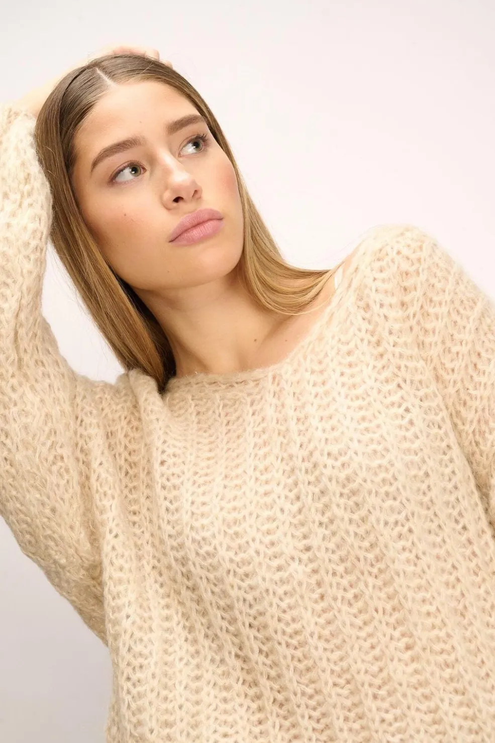 Langærmet sweater med ballonærmer.