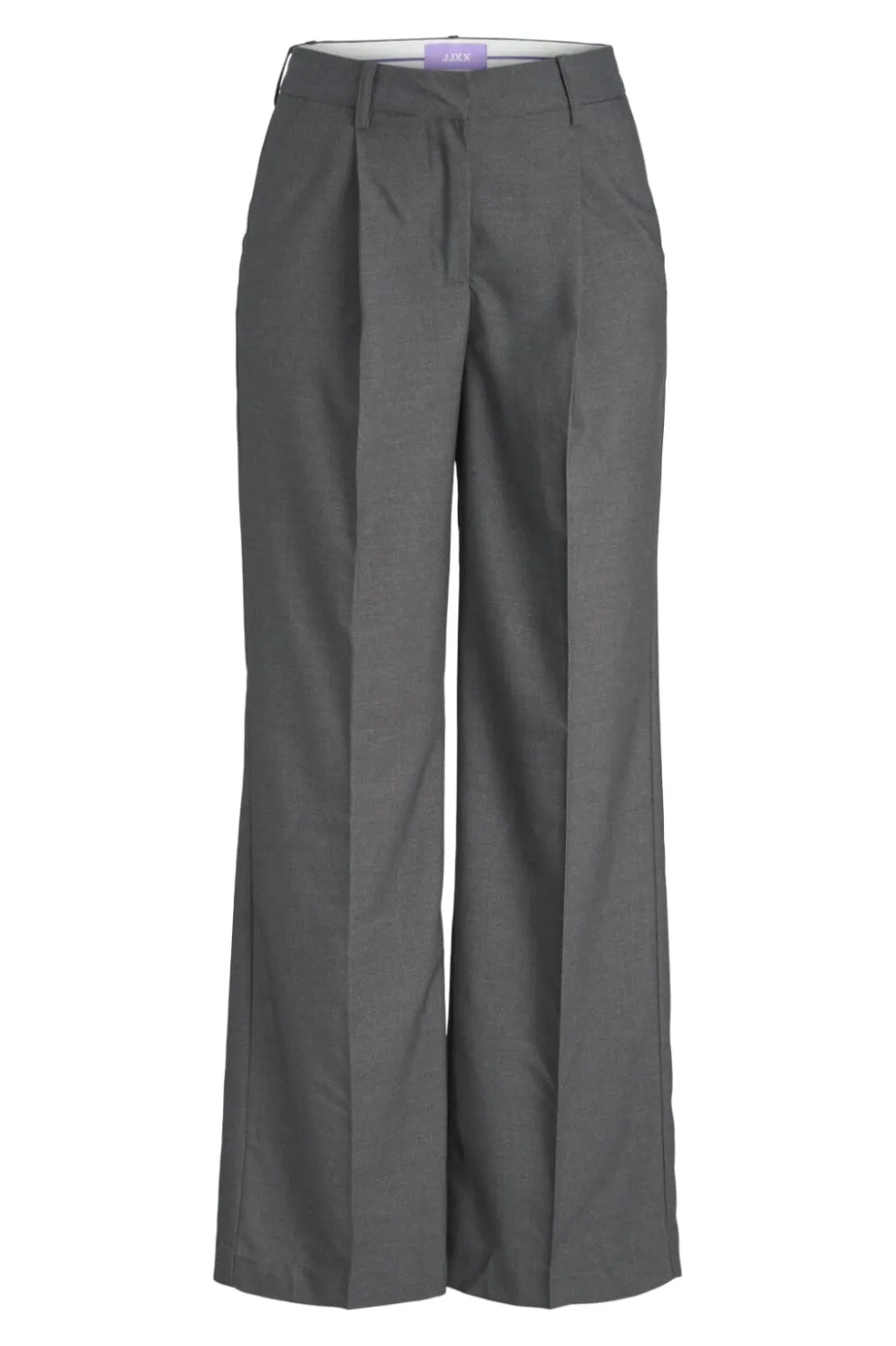 Mørkegrå bukser fra Jjxx i en slidstærk, vævet kvalitet. Bukserne har høj talje og wide leg-fit med lynlåslukning. De passer til både afslappede og formelle anledninger.
