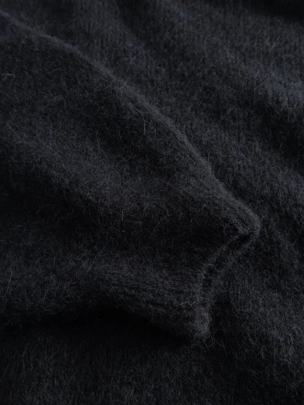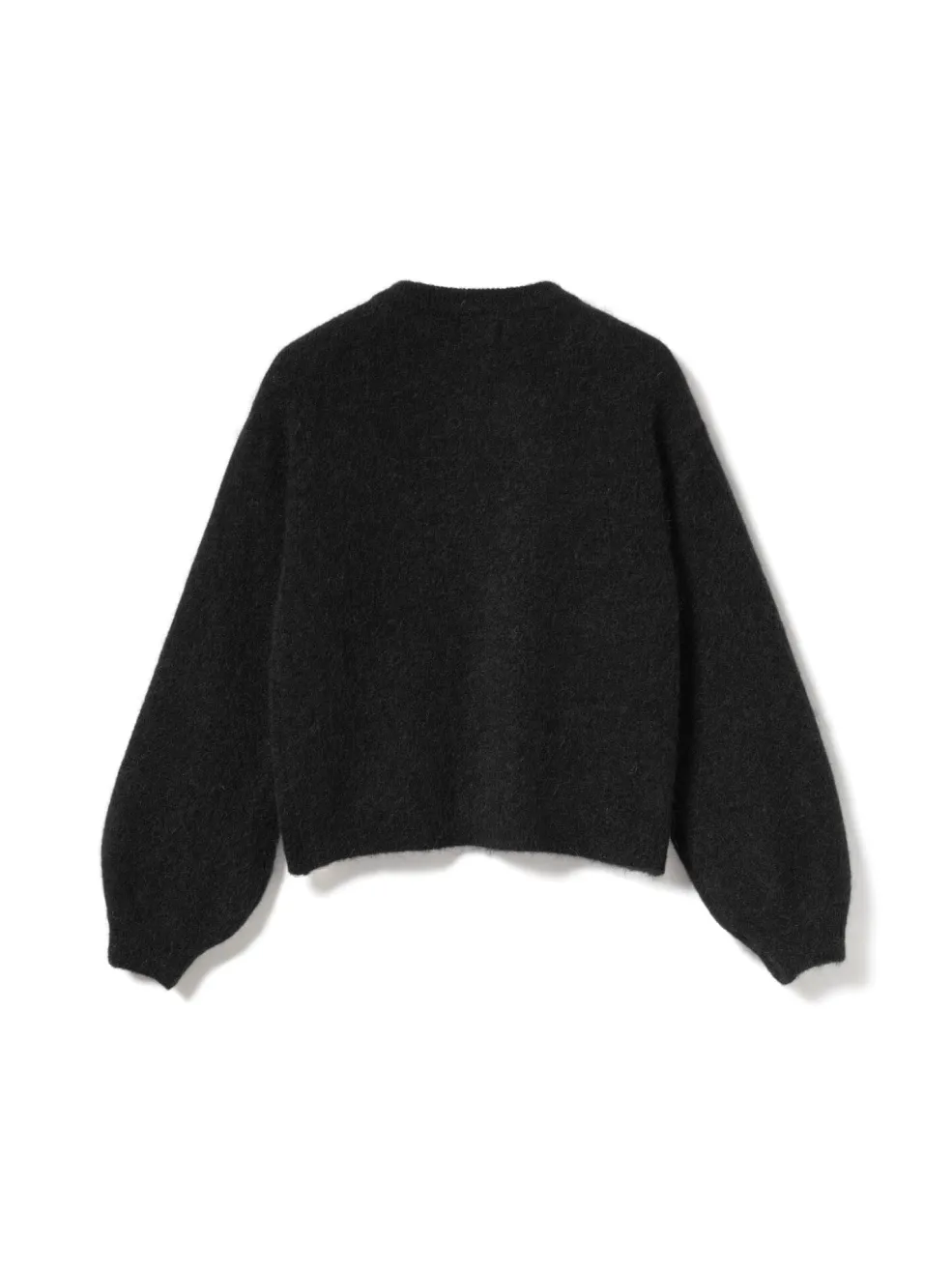 Sort cardigan fra Noella med rund halsudskæring og lange ærmer. Strikket i en blød blanding af mohair og polyamid med perleknapper som lukning.