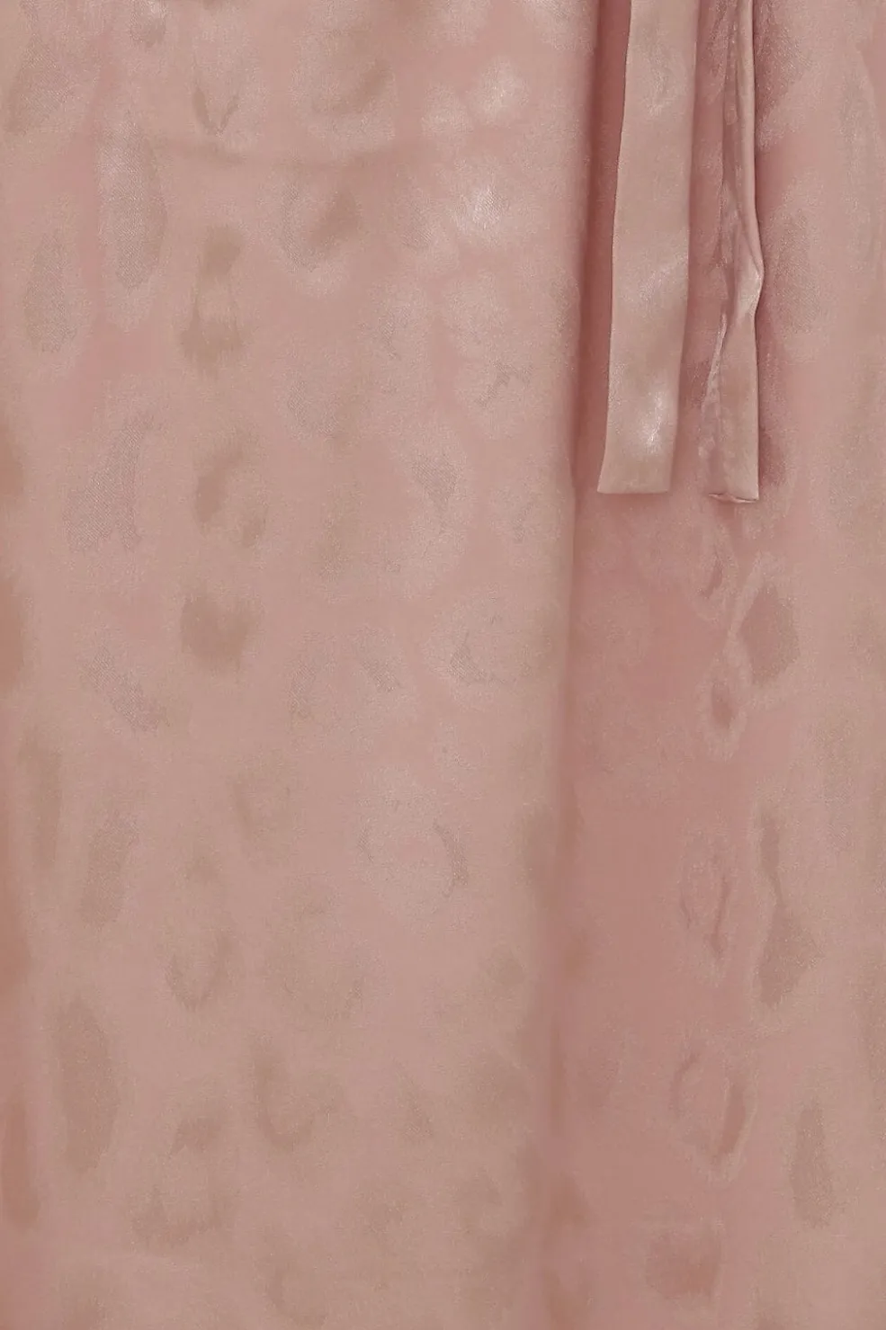 Festkjole i lyserød satin med leopardmønster i jacquardvævning. Kjolen har halterneck med bindebånd i nakken og taljen samt en slids.