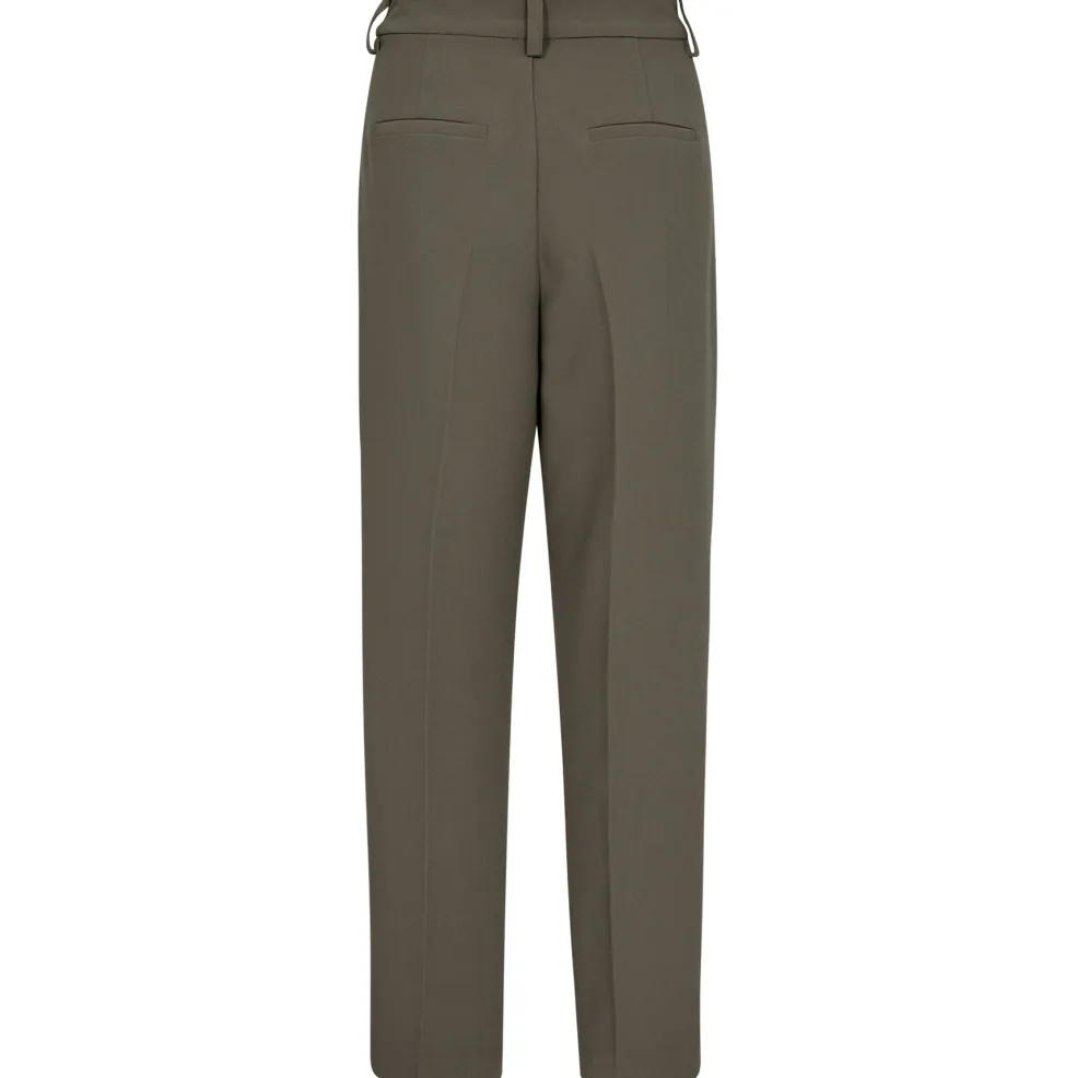 Bukser fra Gossia i en dæmpet mosgrøn farve. De har en regulær pasform og ankellængde, som gør dem brugbare til både afslappede og formelle anledninger.