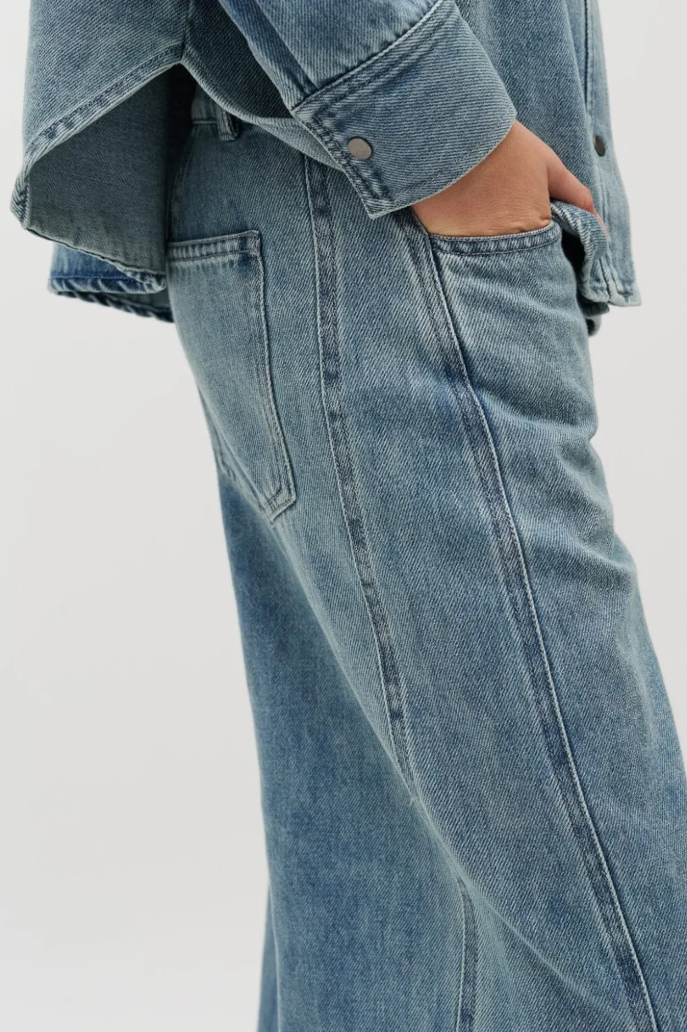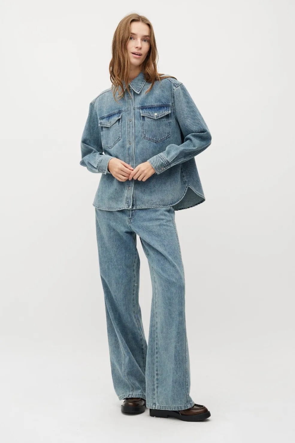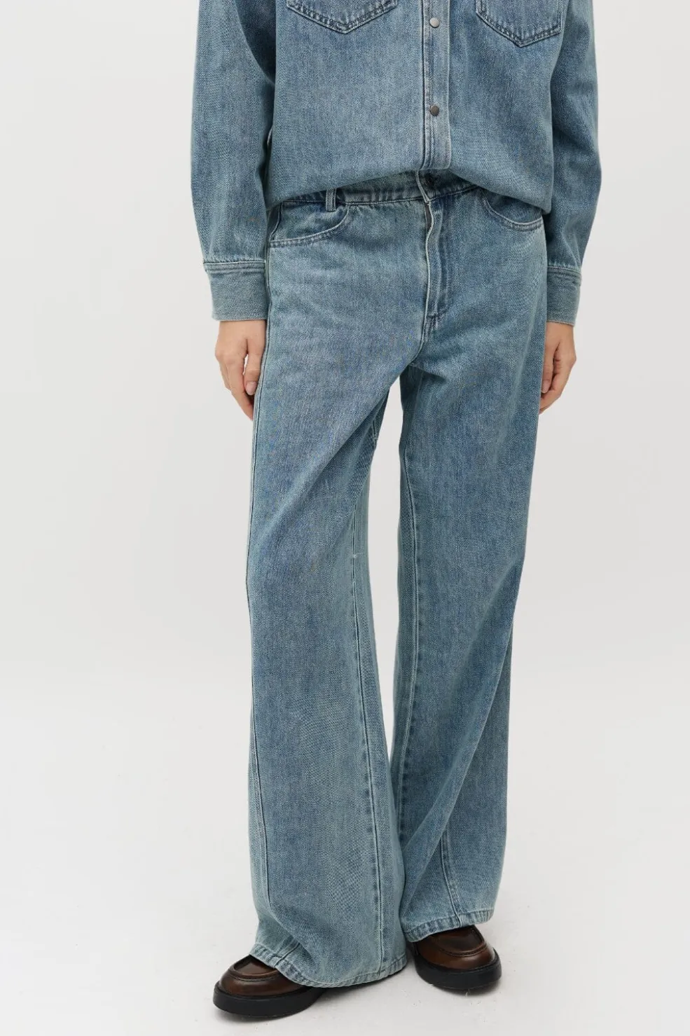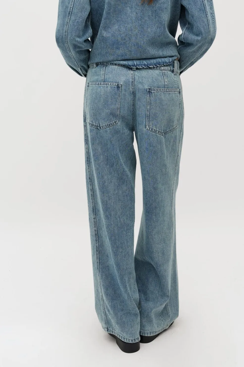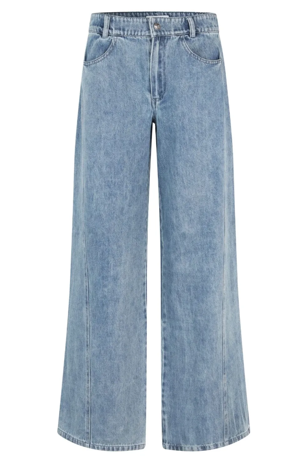 Jeans fra MbyM i lyseblå soft wash nuance. Bukserne er lavet af 100% bomuld og har en løs pasform med klassisk 5-lomme stil.