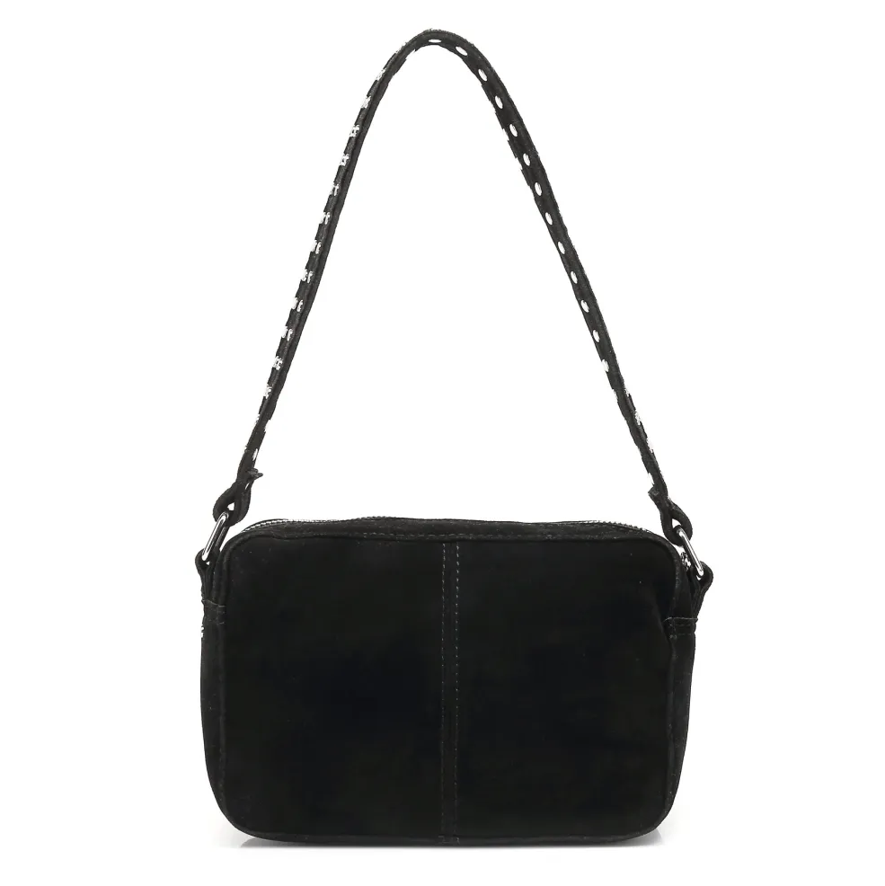 Sort crossover-taske fra Noella med to praktiske lynlåslommer foran. Tasken har en ekstra rem, så den kan bæres både over skulderen og som crossbody.