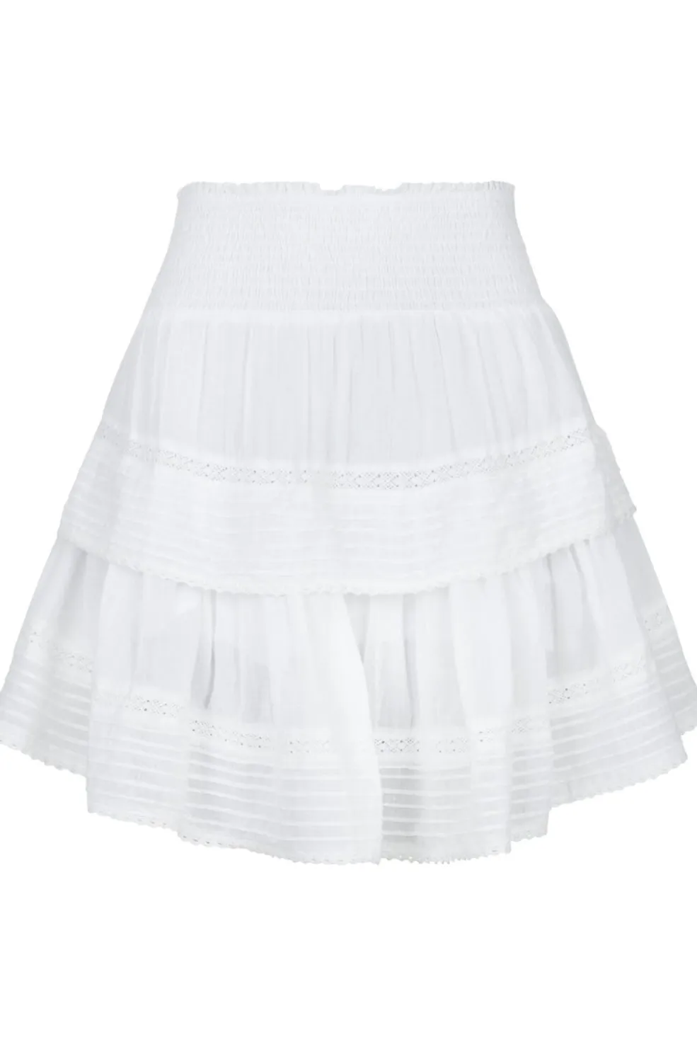 Hvid nederdel fra Neo Noir i let bomuldsvoile. Nederdelen har flæsedetaljer og en smock-elastik i taljen, der giver et feminint udtryk og en god pasform.