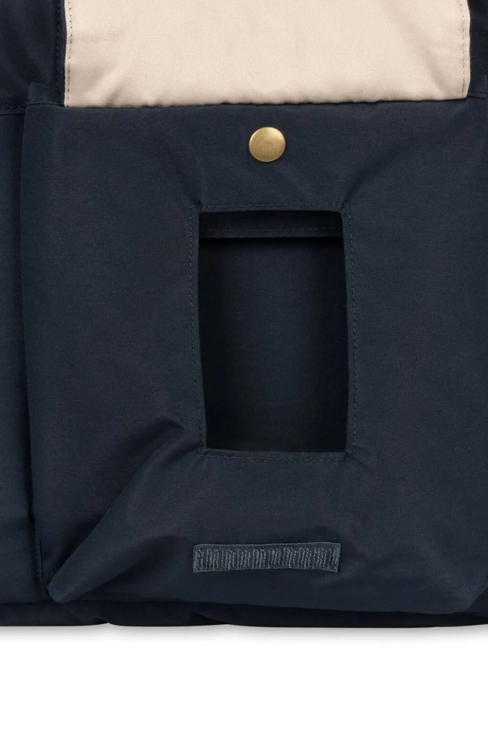Mørkeblå pusletaske fra Konges Sløjd med aftagelig puslepude og flere rum til organisering af babyudstyr. Tasken har vandafvisende egenskaber og praktiske lukkemekanismer.