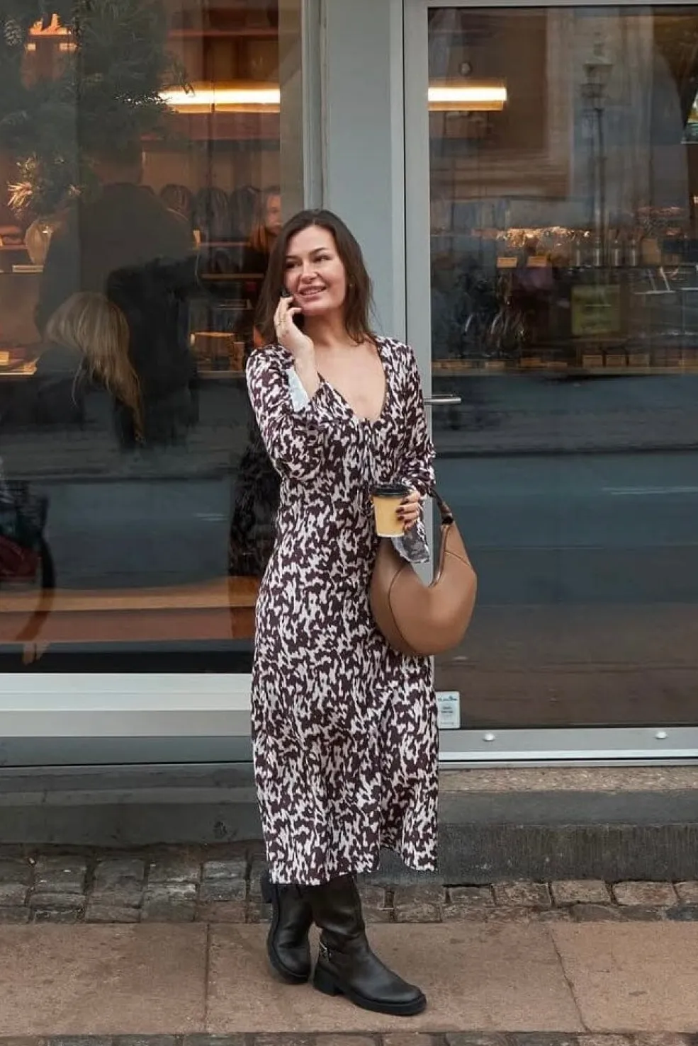 - Grafisk mønster i brun og hvid