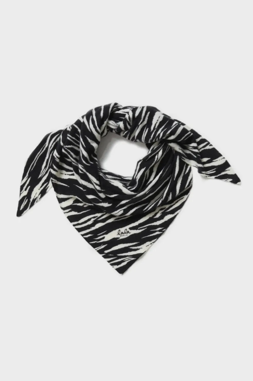 Trekantet tørklæde fra Lala Berlin med sort-hvidt tigerstribemønster. Lavet af en cashmereblanding med et trykt dyreprint.