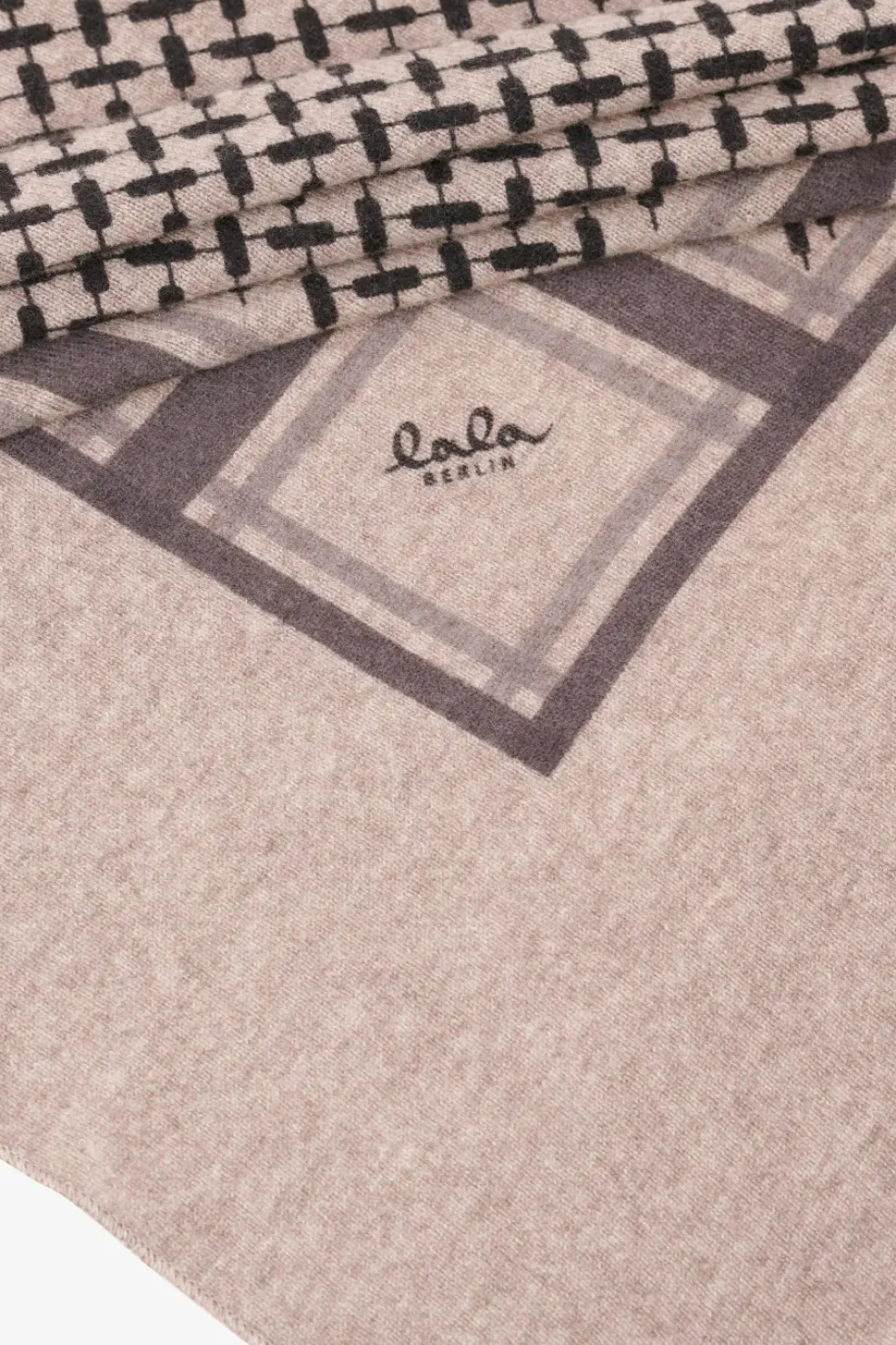 Trekantet tørklæde fra Lala Berlin i brun melange. Tørklædet har det karakteristiske Trinity-mønster med kontrastkant og er fremstillet i blødt cashmere.