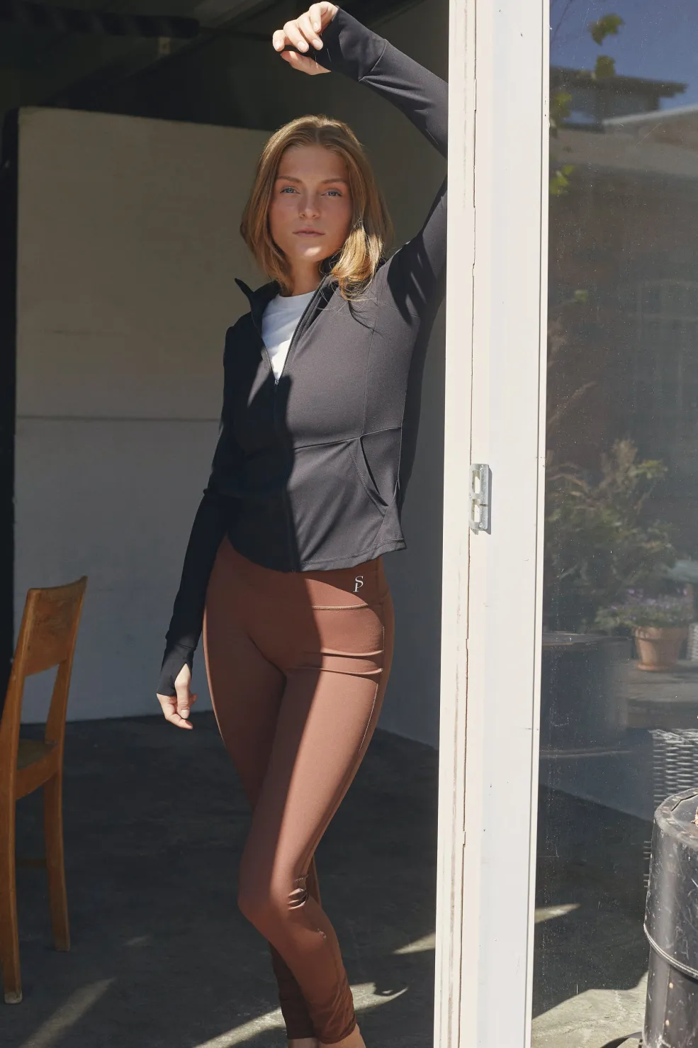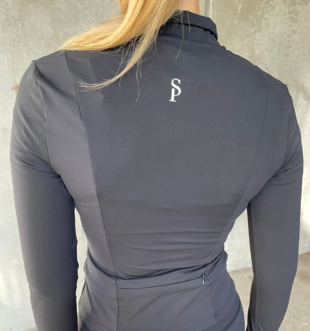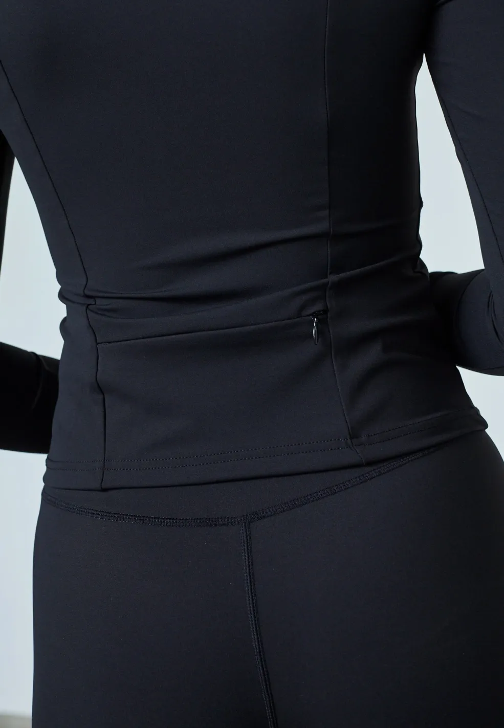 Sort top fra Sisters Point, lavet af 60 % nylon og 40 % elastan. Toppen har en høj krave og lange ærmer.