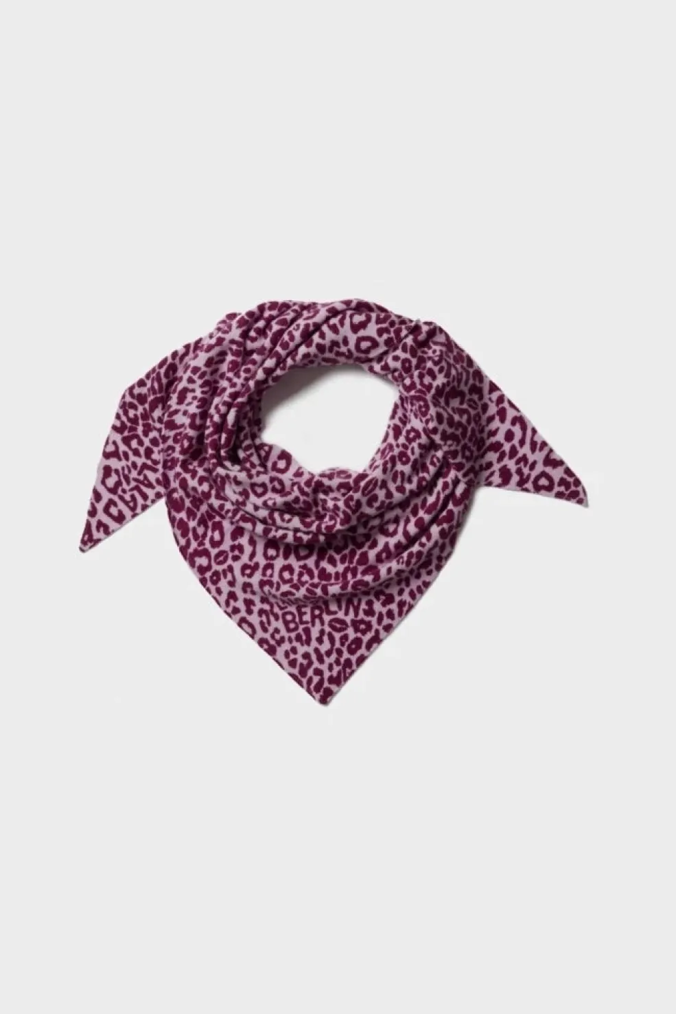 Trekantet tørklæde fra Lala Berlin med leopardmønster i bordeauxnuancer. Tørklædet er lavet af en cashmere-blanding med print.