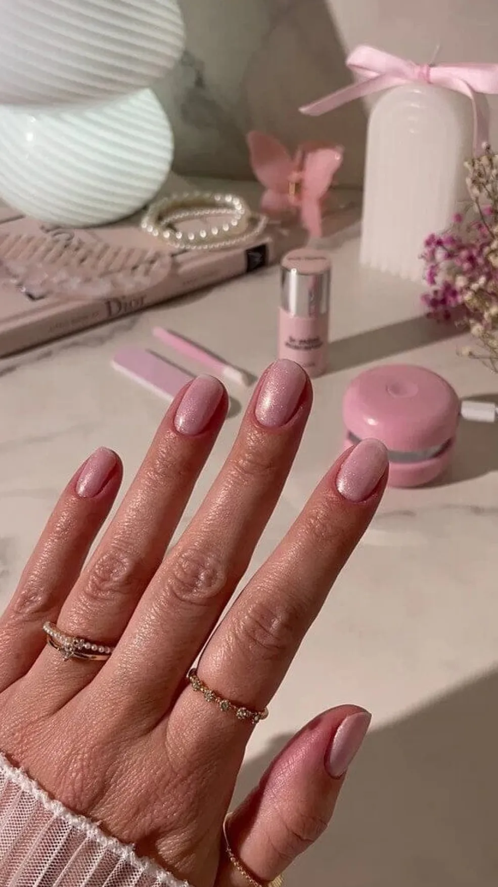 Gel manicure-sæt med LED-lampe og gelneglelak i nuancen Pink Quartz. Sættet indeholder alt det nødvendige til en hjemmemanicure med et holdbart resultat.