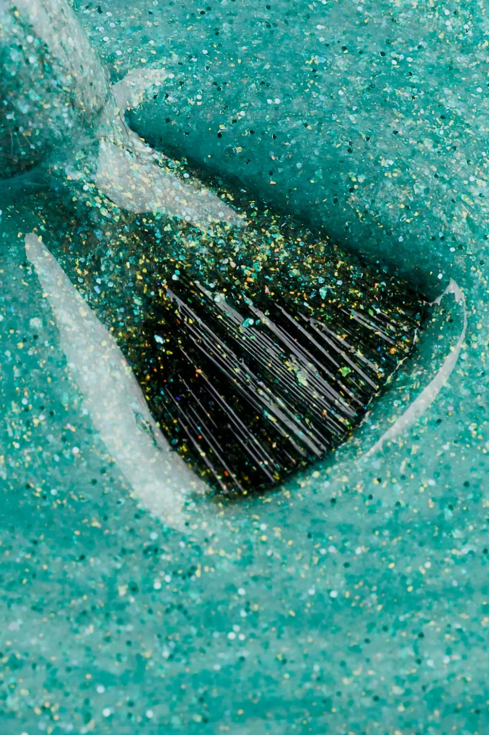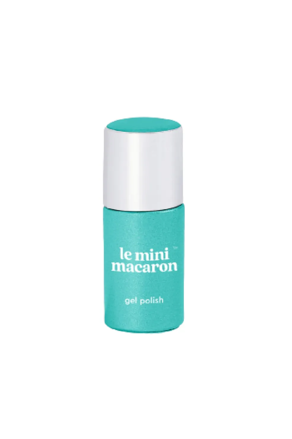 Turkis gelneglelak med glimmereffekt fra Le Mini Macaron. En 3-i-1 formel med base coat, farve og top coat i samme produkt.