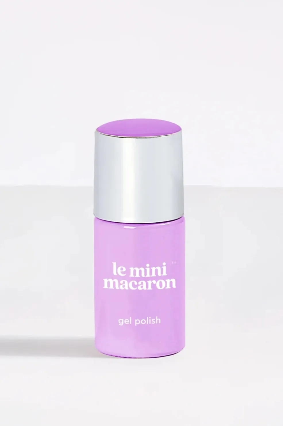 Gelneglelak i lavendelnuance fra Le Mini Macaron. Den lyse lilla farve passer til både hverdag og fest og giver et rent udtryk på neglene.