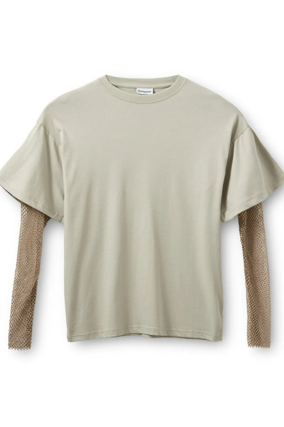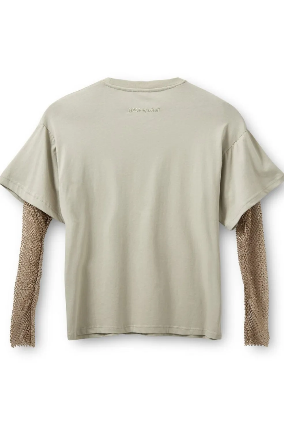 Lys grå t-shirt med lange ærmer og rhinsten-dekorationer. Broderiet på ryggen og de glimtende ærmer giver t-shirten et festligt præg, mens den løse pasform sikrer god bevægelsesfrihed.