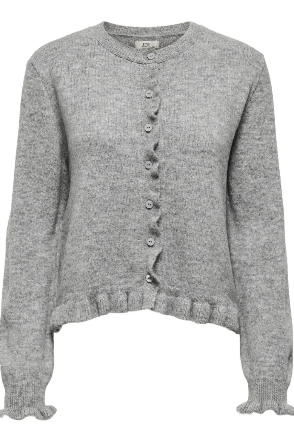 Opgrader din garderobe med denne elegante cardigan fra Jdy i en smuk lys grå melange farve.