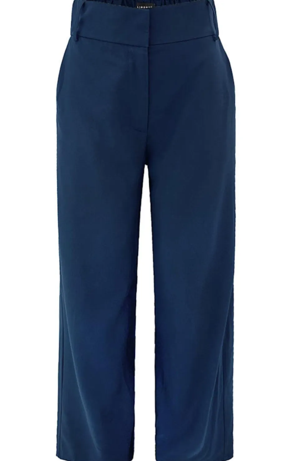 Videbukser fra Liberte i mørkeblå. Bukserne har en bred benform og en elastisk talje bagpå for bedre pasform.