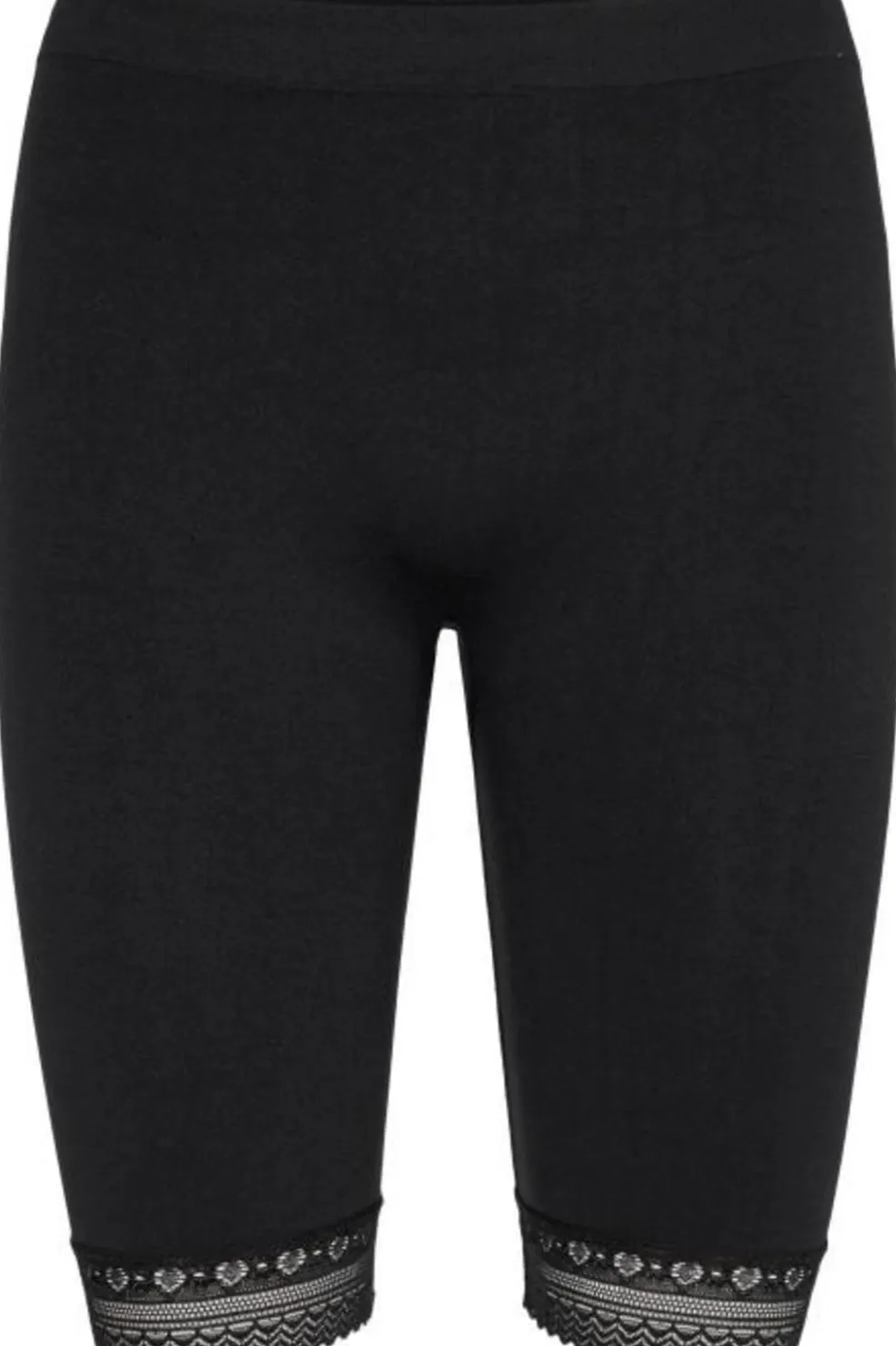 Sorte shorts fra Liberte med blondekant ved benene. Shortsene har en tætsiddende pasform og en elastisk talje, der giver god bevægelsesfrihed.
