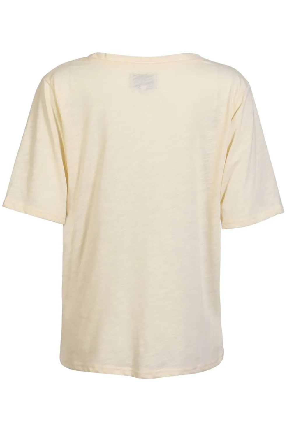 Cremehvid t-shirt fra Liberte med v-hals og korte ærmer. Den bløde viscose giver t-shirten et let fald og god komfort i hverdagen.