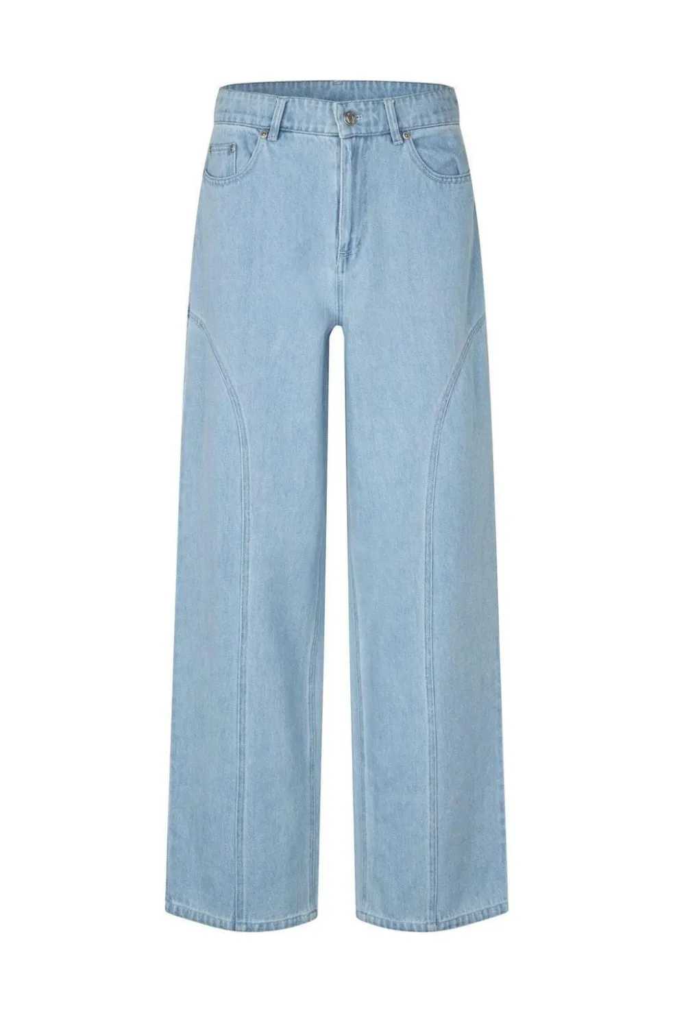 Jeans fra MbyM i lys blå med en løs pasform. Jeansene har en høj talje og en gulvlængde.