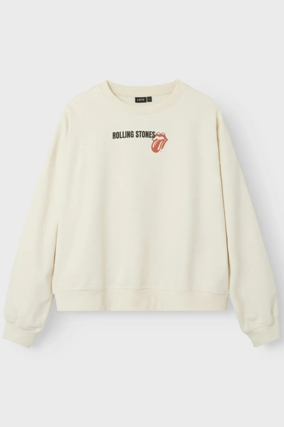 Sweatshirt fra Lmtd i cremehvid med Rolling Stones-logo og tekst på for- og bagside. Den børstede inderside giver blødhed mod huden, og sweatshirten har rund hals med ribkant.