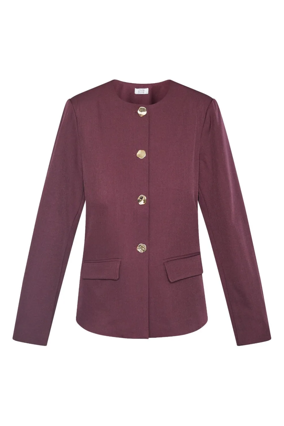 Blazer fra Love & Divine i mørk bordeaux. Fremstillet i 96% polyester og 4% elastan, har den lange ærmer og en rund halsudskæring.