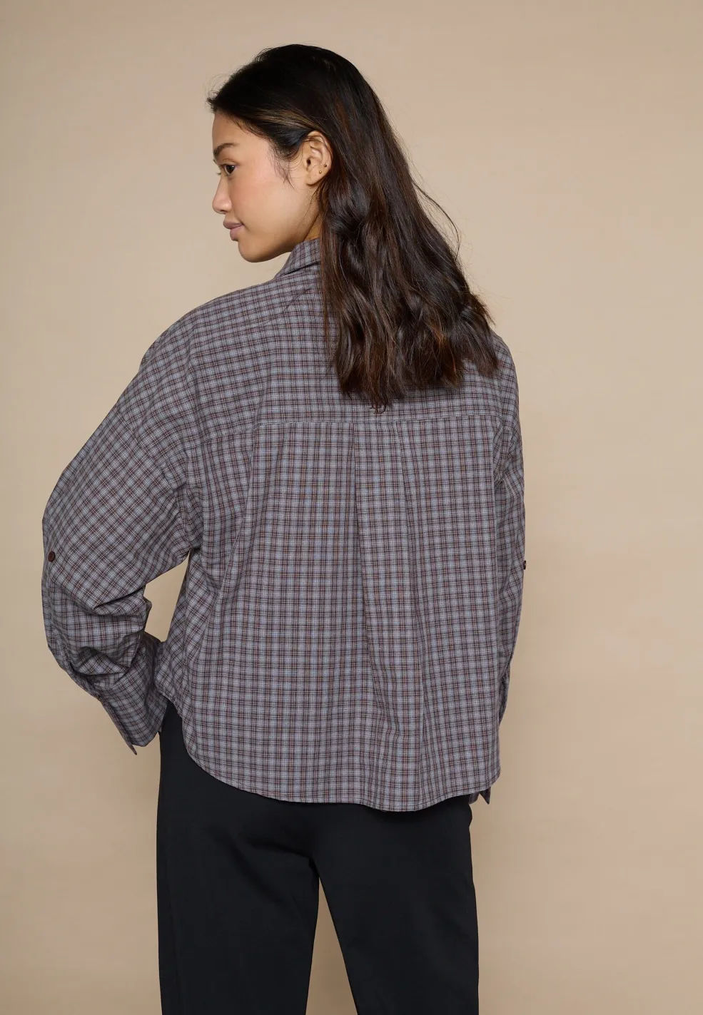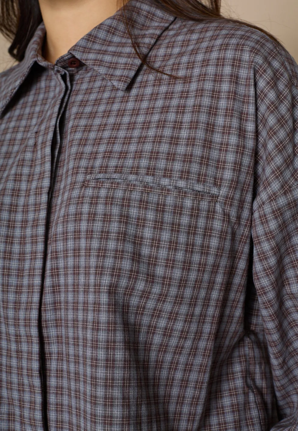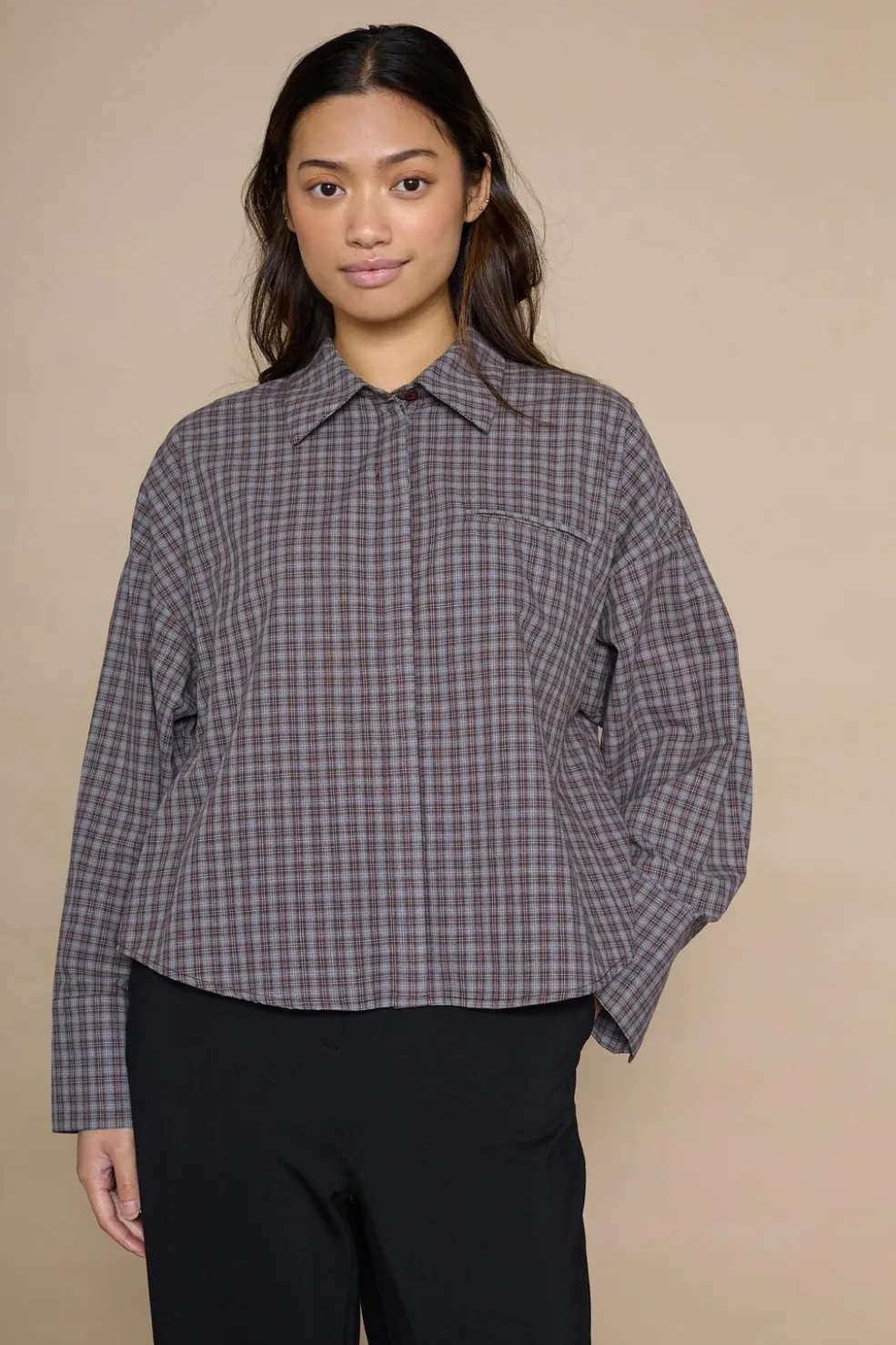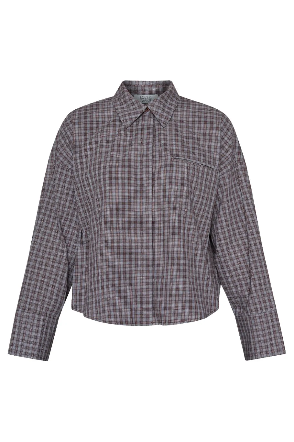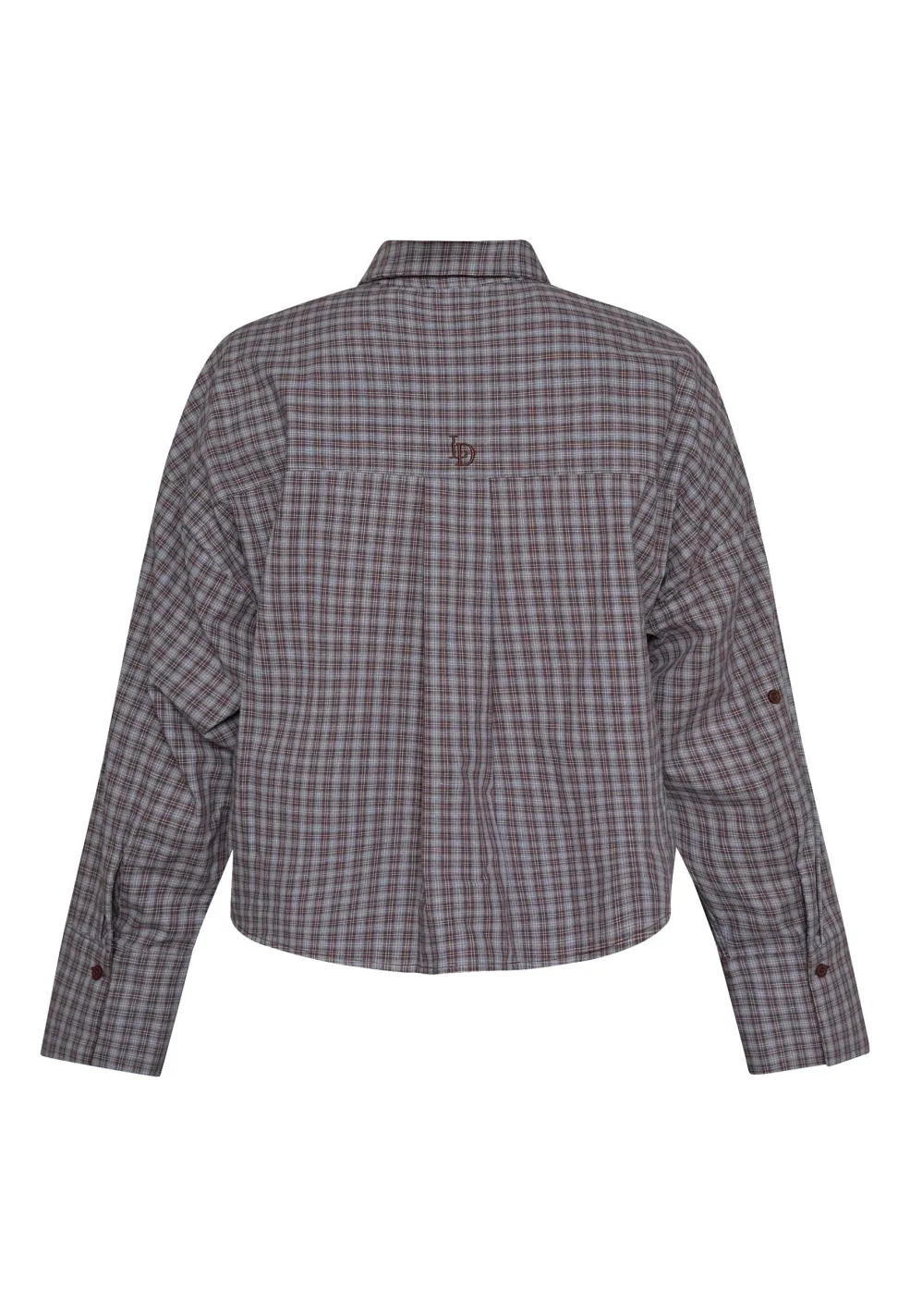 En brunternet skjorte fra Love & Divine, lavet af 100 % bomuld i en kombination af brune og grå tern.