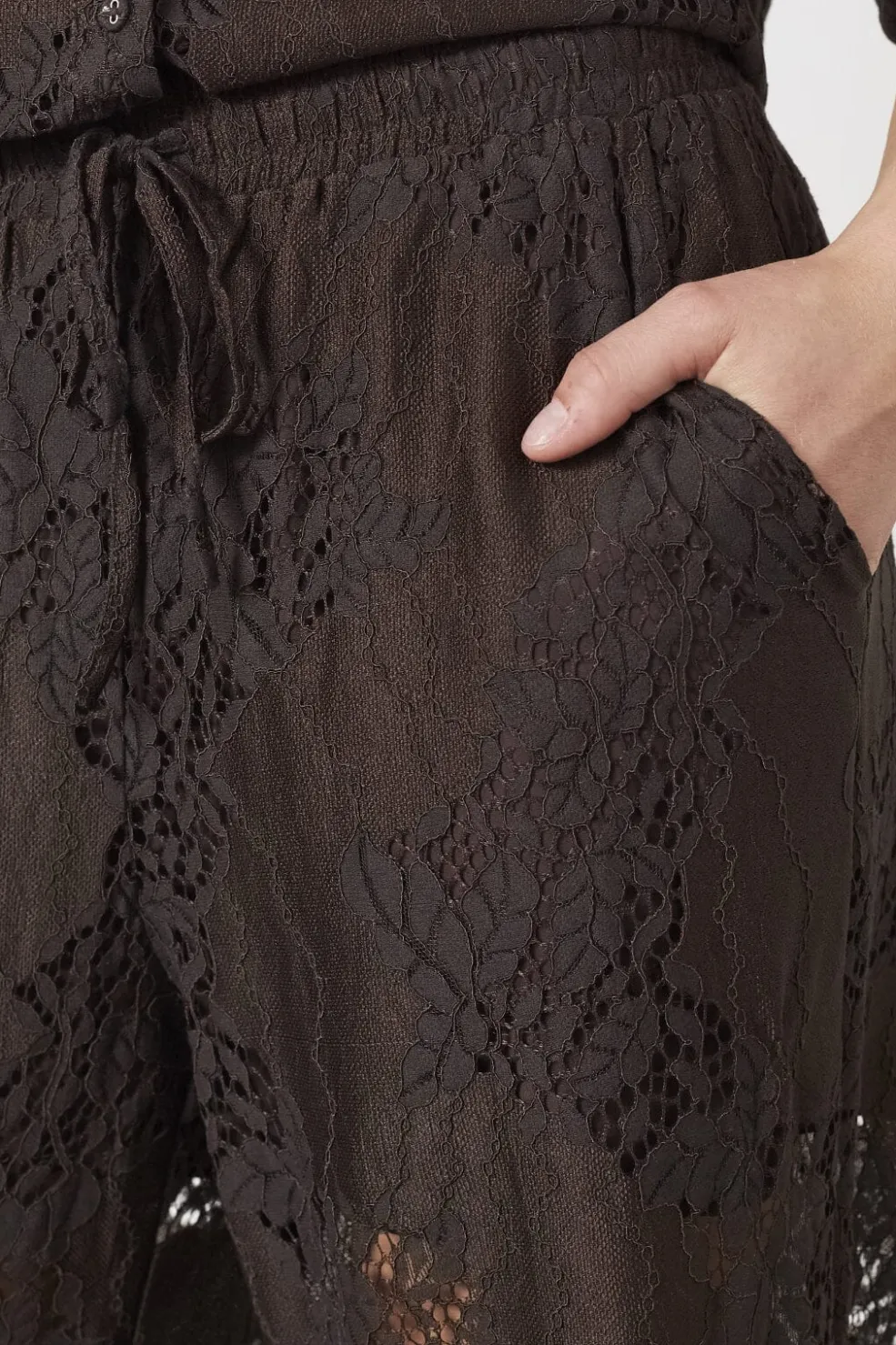 Mørk chokoladebrun beklædning fra Love & Divine med en blanding af polyamid og bomuld. Stoffet har en praktisk kombination af holdbarhed og komfort. men lange ”inder bukser”