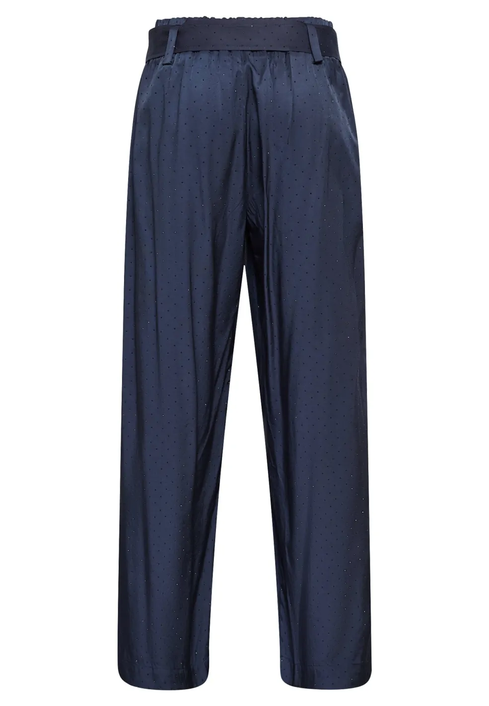 Mørkeblå bukser fra Love & Divine med små prikker og pailletter. Bukserne har høj talje, løs pasform og går til anklen.