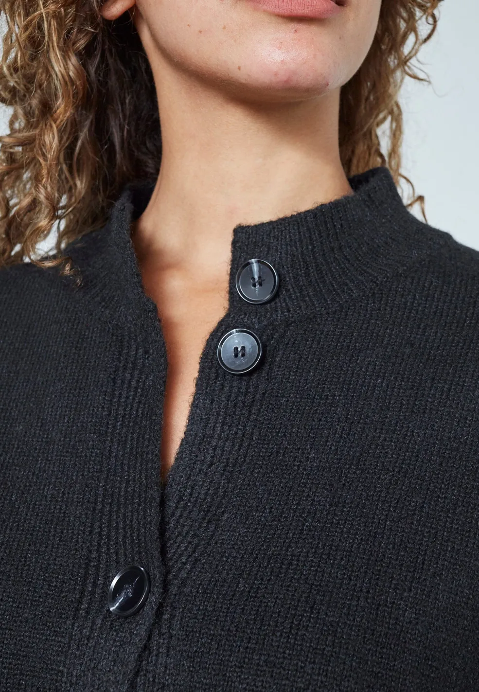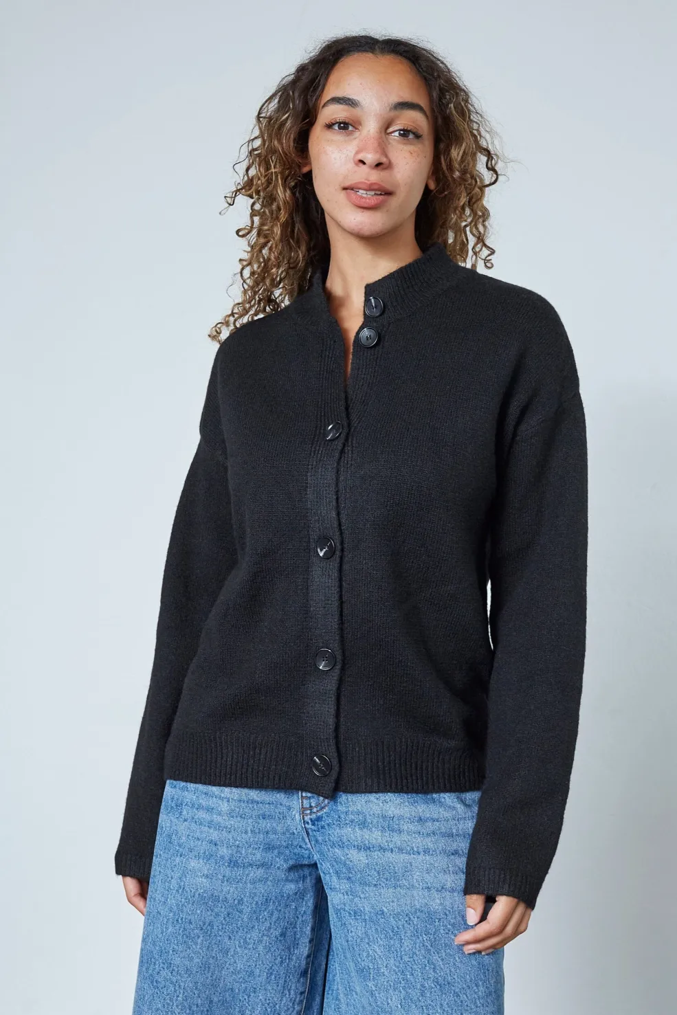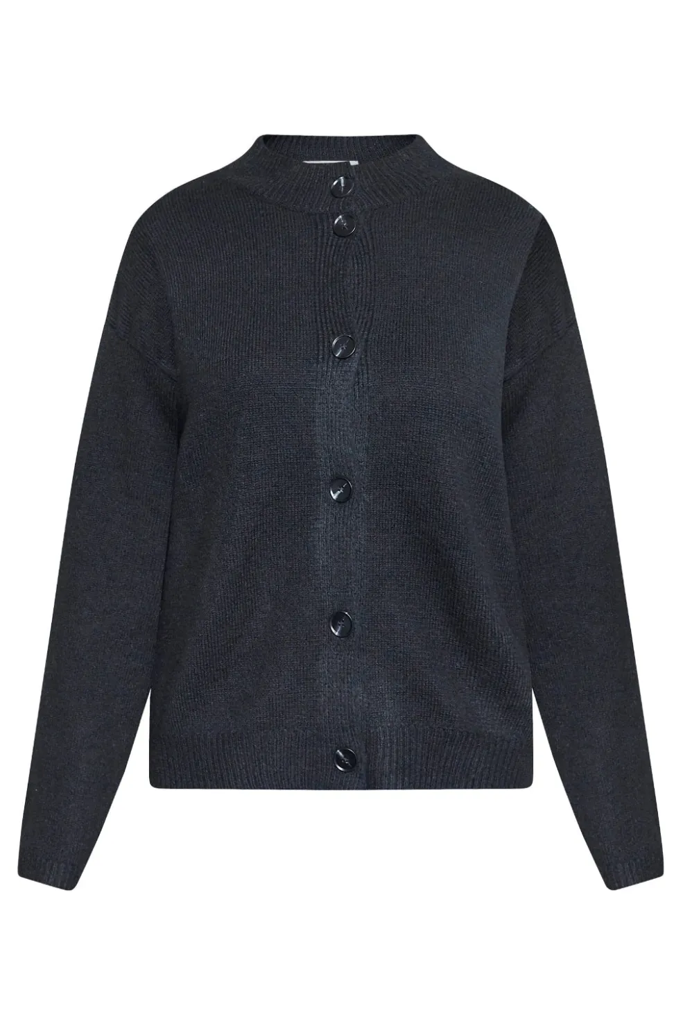 Sort cardigan fra Sisters Point med knaplukning og rund halsudskæring. Cardiganen har lange ærmer med raglanfacon og ribstrikkede kanter.