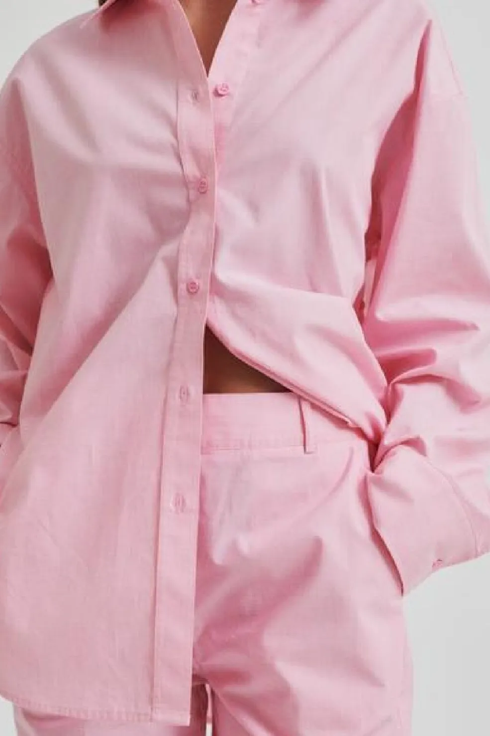 Lyserøde bukser fra Second Female i farven Pink Cosmos. Bukserne har et lige ben og går ned til gulvet.