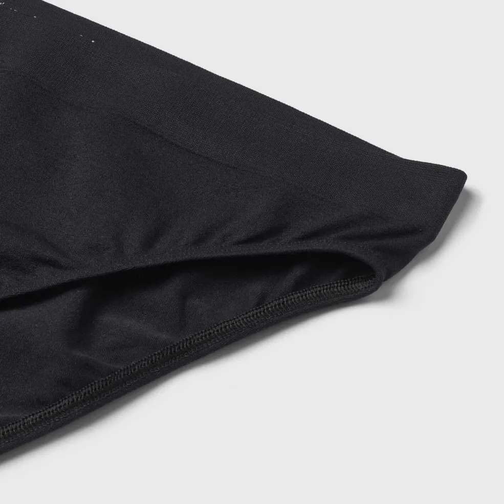 Sort brief med bred linning og brandlogo. Den kombinerer et enkelt design med praktiske detaljer og er lavet i en blød materialeblanding med stræk.
