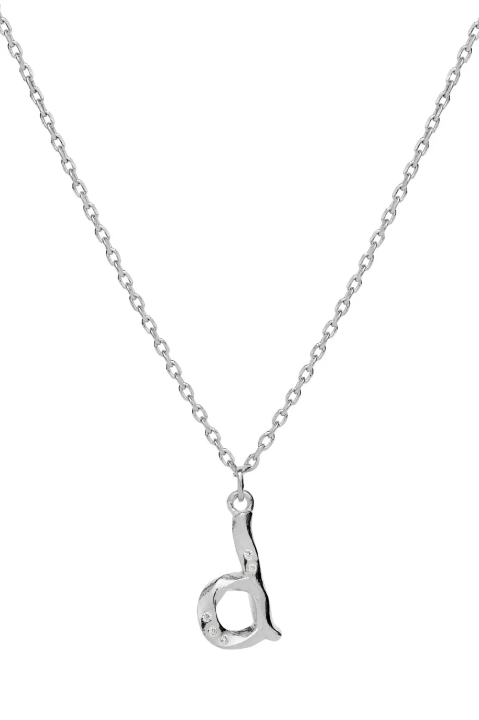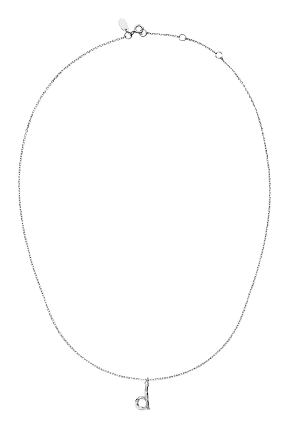 Sølvhalskæde fra Maanesten med bogstavet D som vedhæng. Kæden er lavet af genanvendt sterlingsølv med en høj sølvprocent på 925, hvilket giver en flot glans.