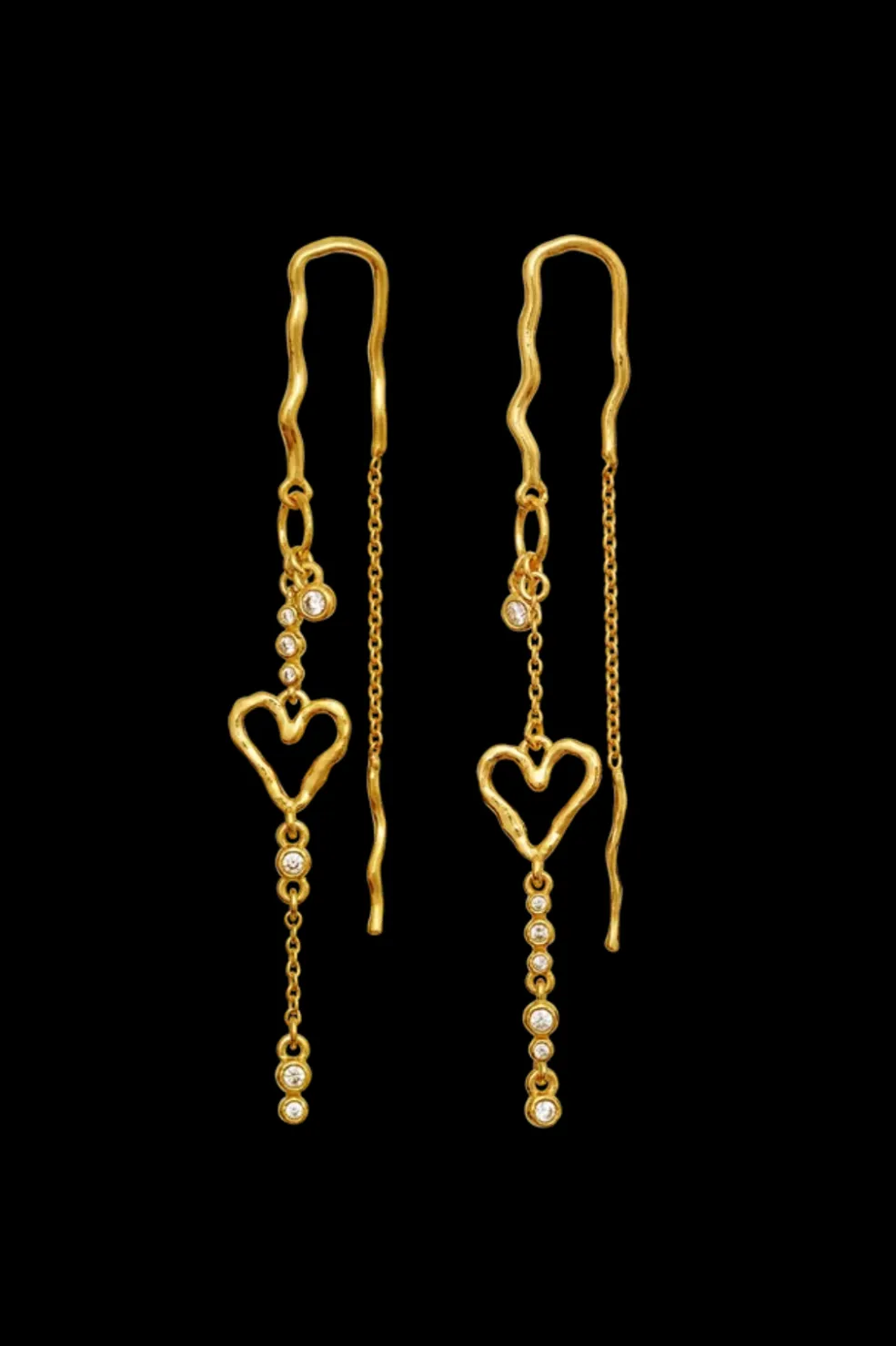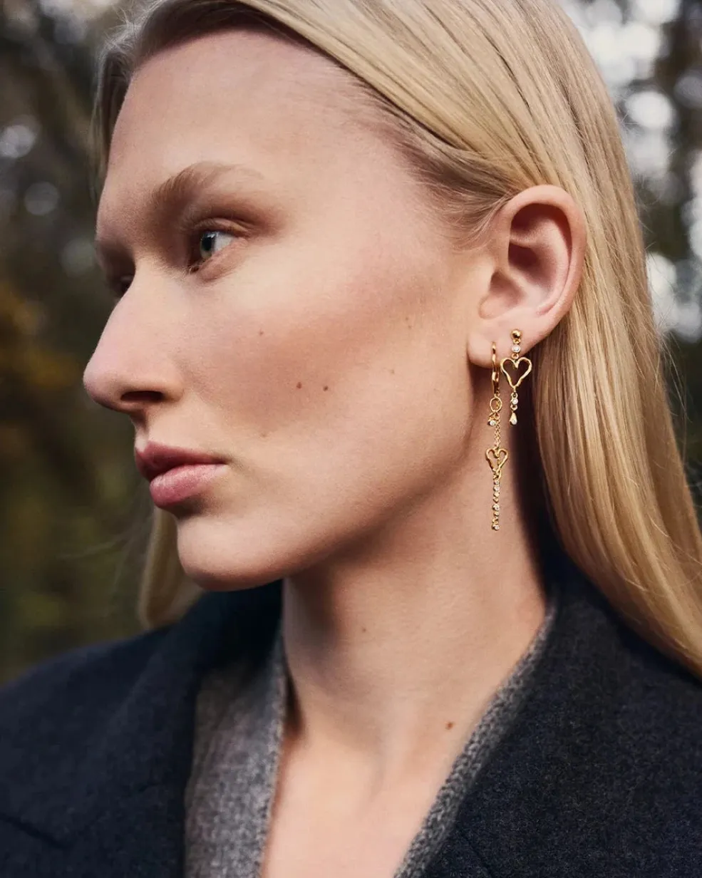 Øreringe fra Maanesten, lavet af genanvendt sterlingsølv belagt med 18 karat guld. Øreringene er prydet med hvide zirkoner i en slank silhuet.