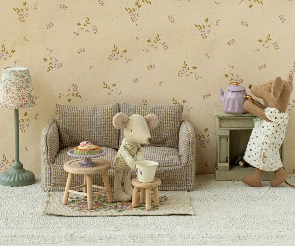 Sofaen er ideel til at skabe hyggelige hjørner i musenes hjem og tilføjer et strejf af elegance til deres daglige liv.