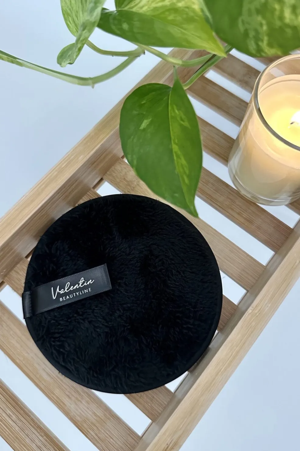 Sort makeupsvamp fra Valentin Beautyline. Denne rengøringssvamp kan bruges sammen med forskellige renseprodukter og er fremstillet med en blød tekstur til grundig makeupfjernelse.