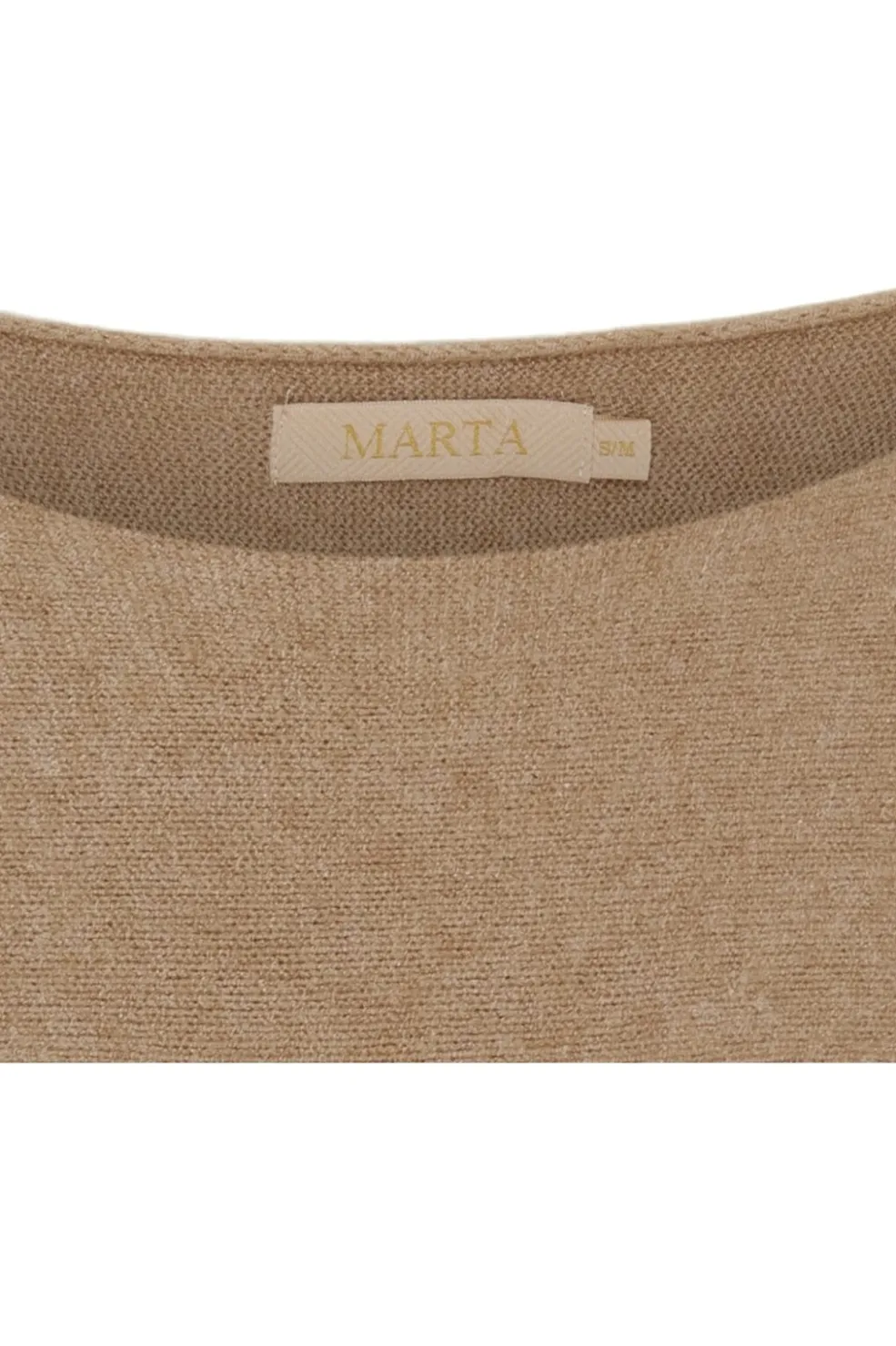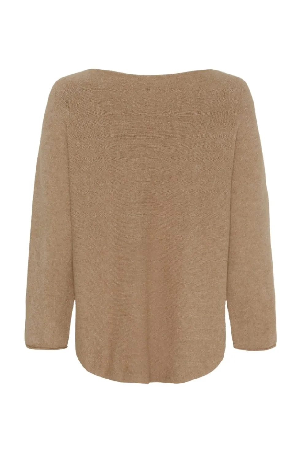 Strikbluse fra Marta Du Chateau i camel farve. En blød strik med rund halsudskæring og lange ærmer, der passer godt til både hjemmebrug og afslappede dage.