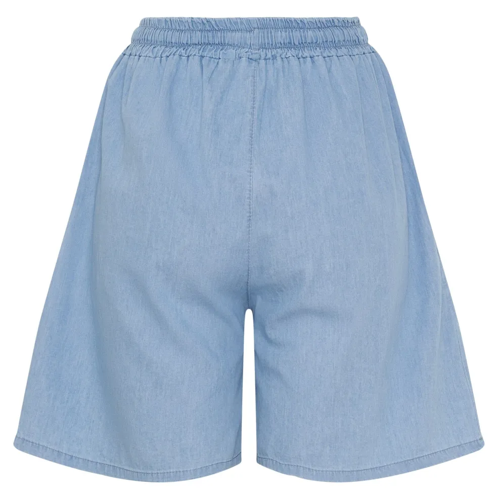 Lyseblå shorts fra Marta Du Chateau i 100 % bomuld. De har en regular fit med elastisk talje og snøre, der gør dem nemme at tilpasse.