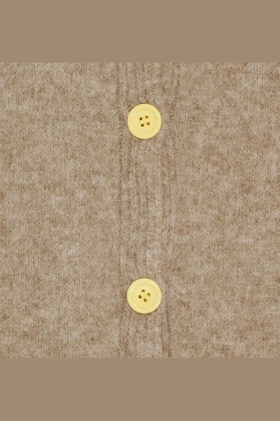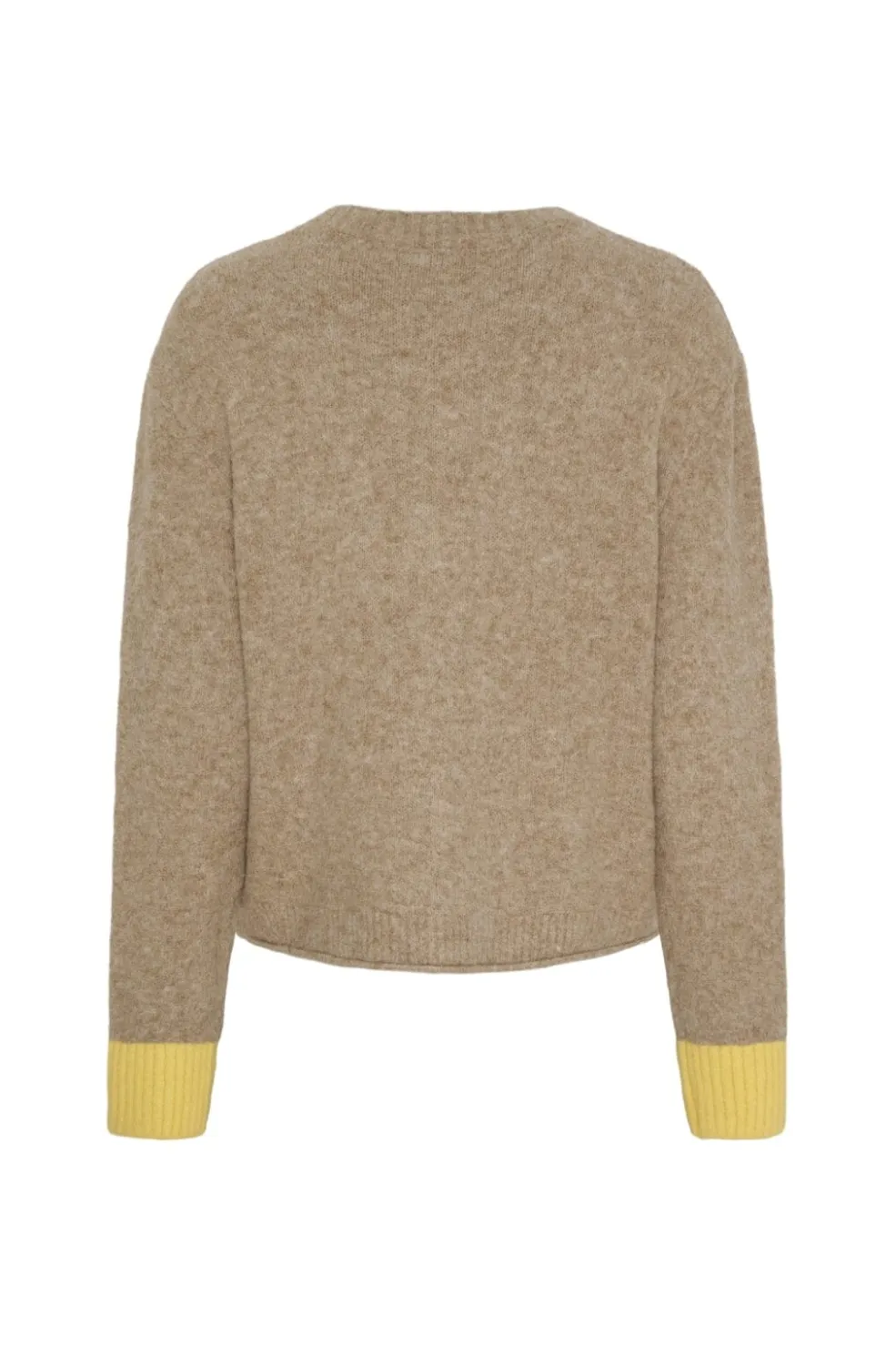 Strikket cardigan fra Marta Du Chateau i taupe farve med gule detaljer. Cardiganen har rund hals og lange ærmer med gule manchetter.