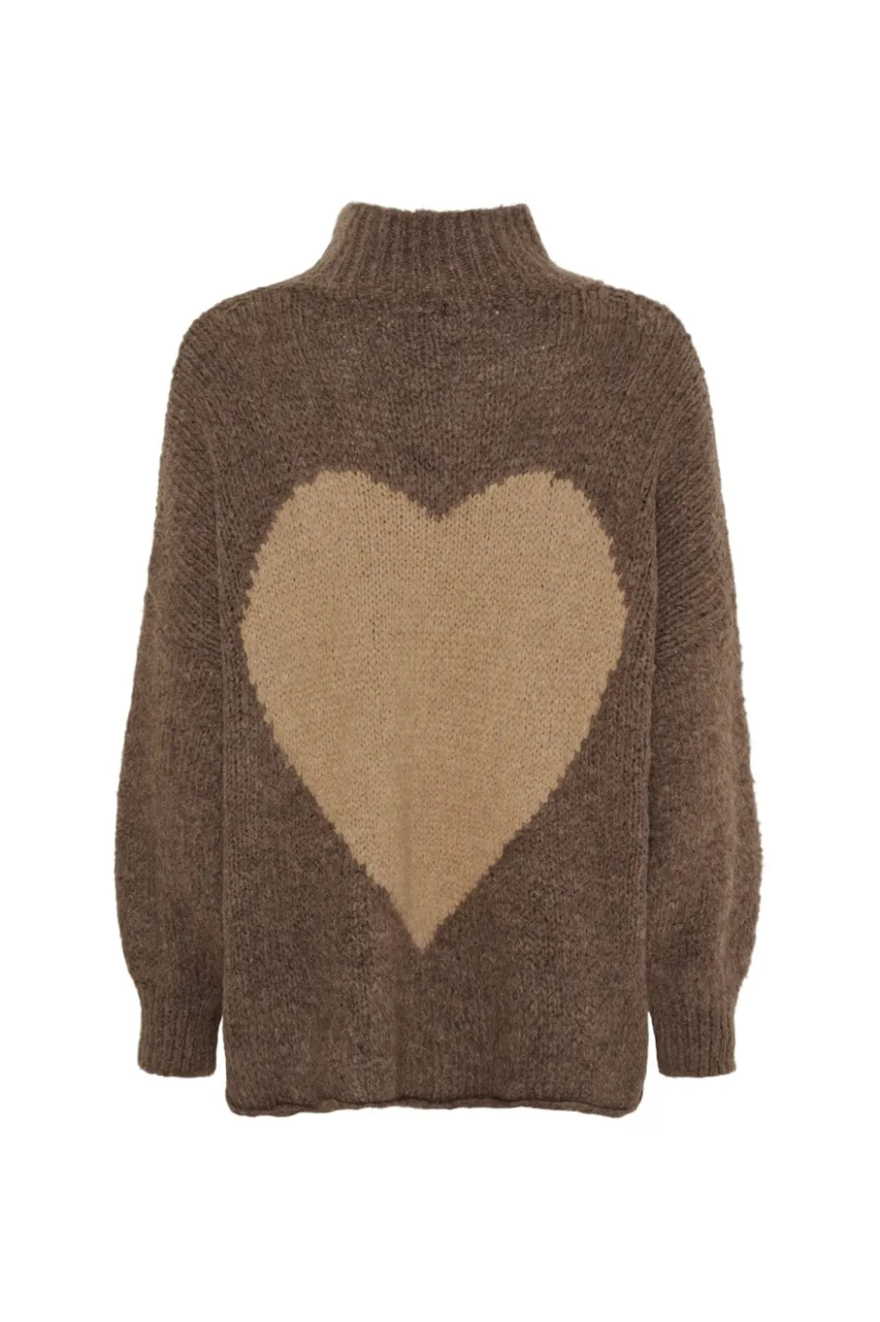 En brun striktrøje fra Marta Du Chateau med hjerteprint. Trøjen passer til dagligdagen hjemme og til afslappede anledninger.