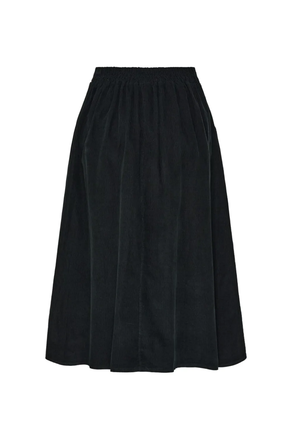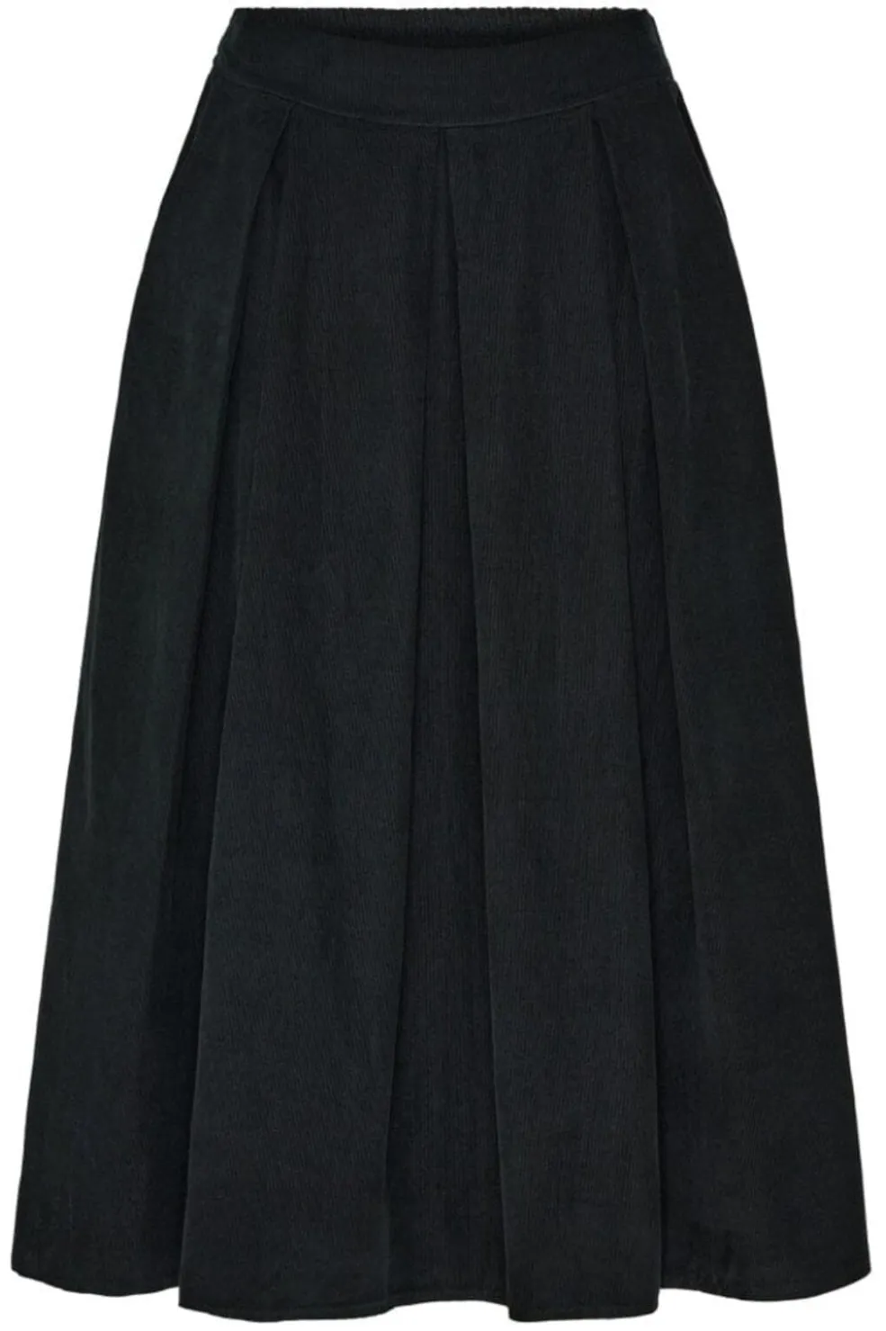 Sort nederdel fra Marta Du Chateau lavet af 100 % bomuld. Nederdelen har et A-formet snit med folder og en ribbet tekstur i stoffet.