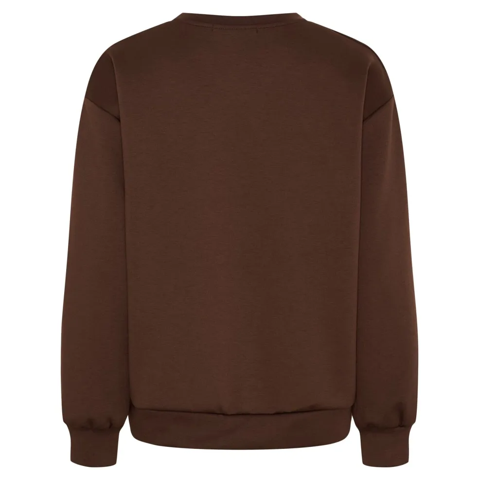 Mørkebrun sweatshirt fra Marta Du Chateau med sort blondedetalje. Sweatshirten har LOS ANGELES 50 print på forsiden og en rund halsudskæring.