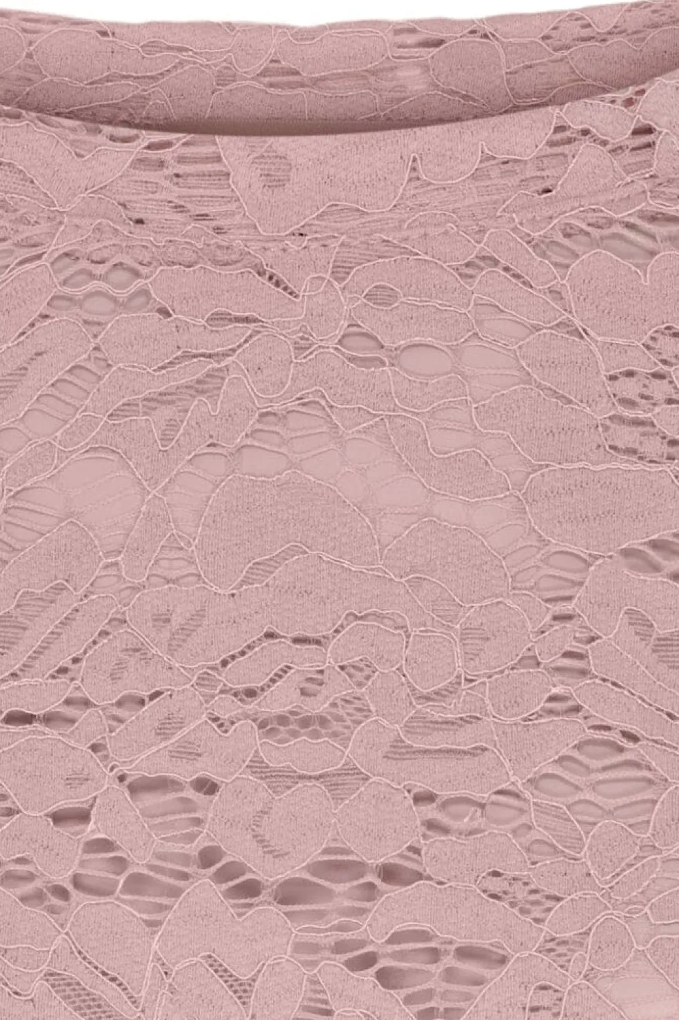 Pink bluse fra Marta Du Chateau med blondearbejde over hele blusen. Blusen har en rund halsudskæring og lange ærmer.