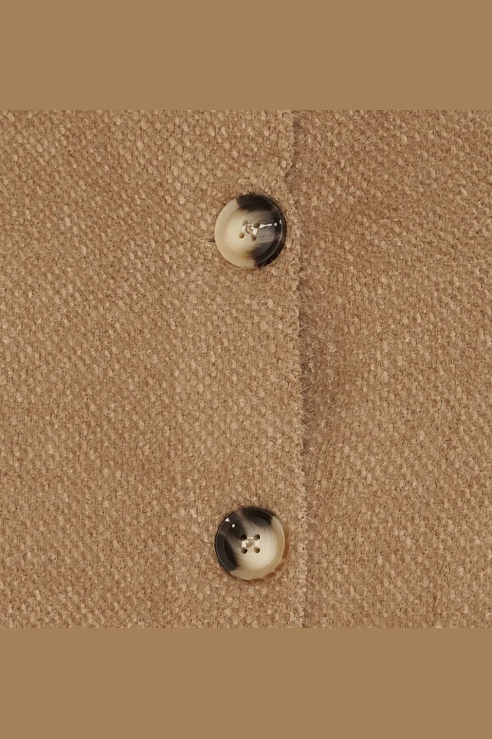 Kamelbrun jakke fra Marta Du Chateau med en løs, kappe-lignende pasform. Jakken har en ensfarvet brun nuance og en afslappet silhuet.