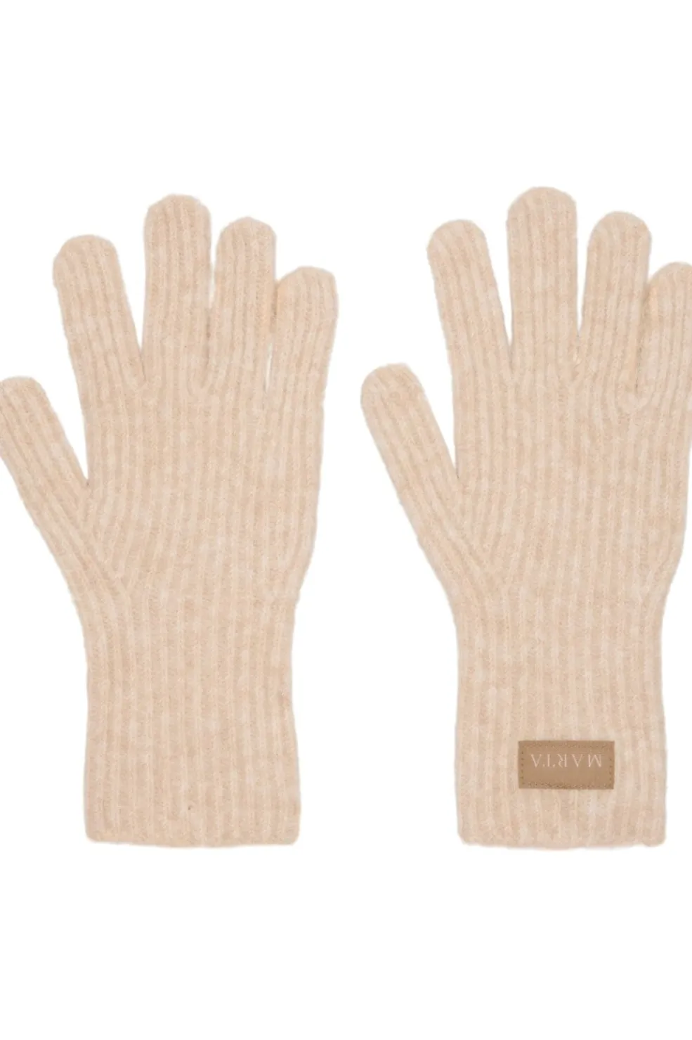Beige handsker fra Marta Du Chateau med ribbet tekstur. Handskerne har et marl-mønster og et diskret mærke på siden, der giver dem et enkelt udtryk.