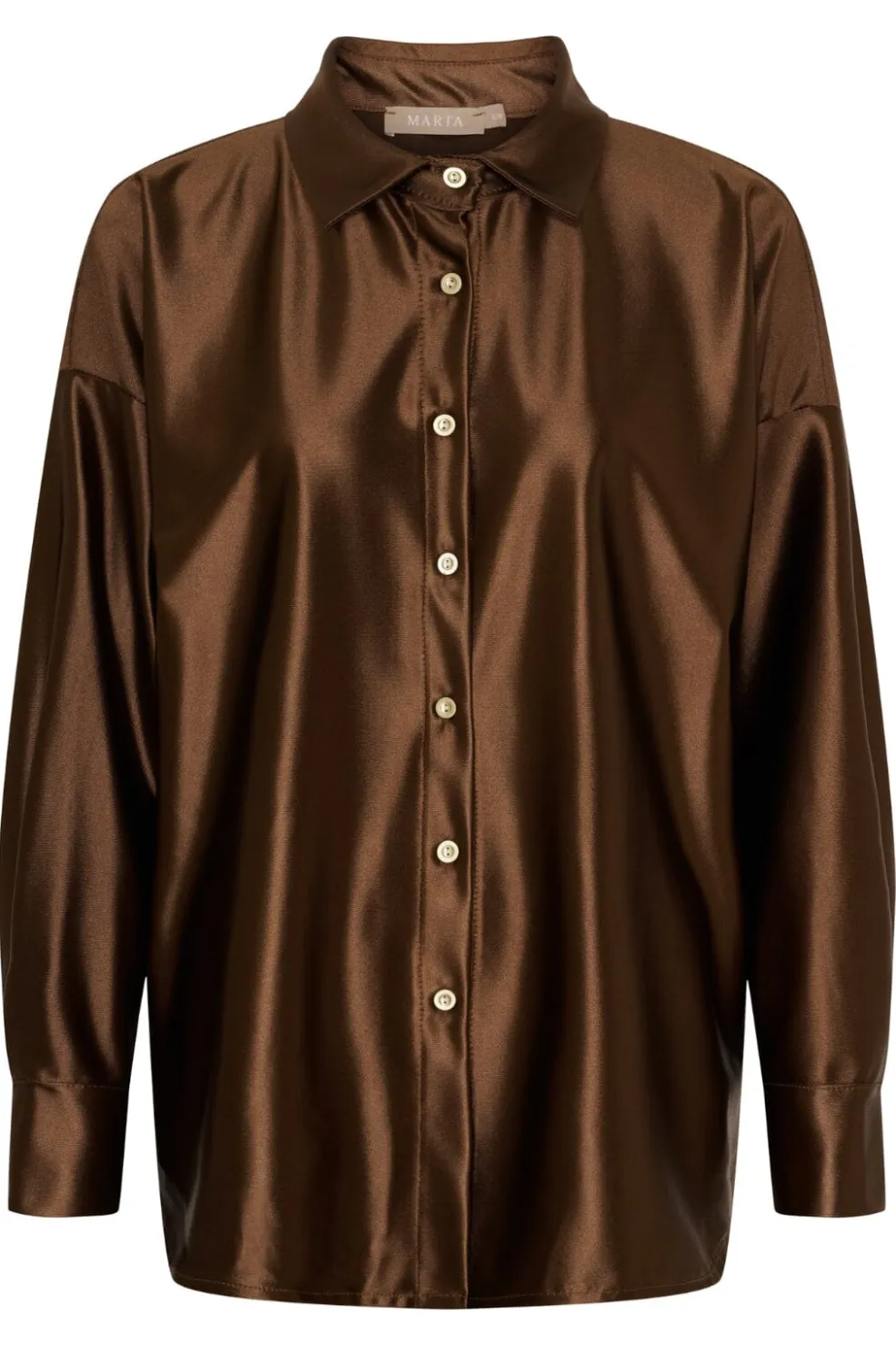 Brun skjorte fra Marta Du Chateau med klassisk krave og knaplukning. Skjorten har en løs pasform og lange ærmer med manchetter.