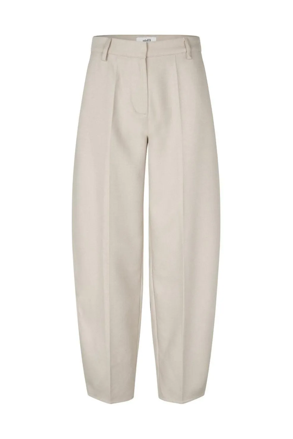 Løse bukser fra MbyM i en brun meleret farve. Bukserne er lavet af 70 % polyester og 30 % viskose med en høj talje og ankellængde.