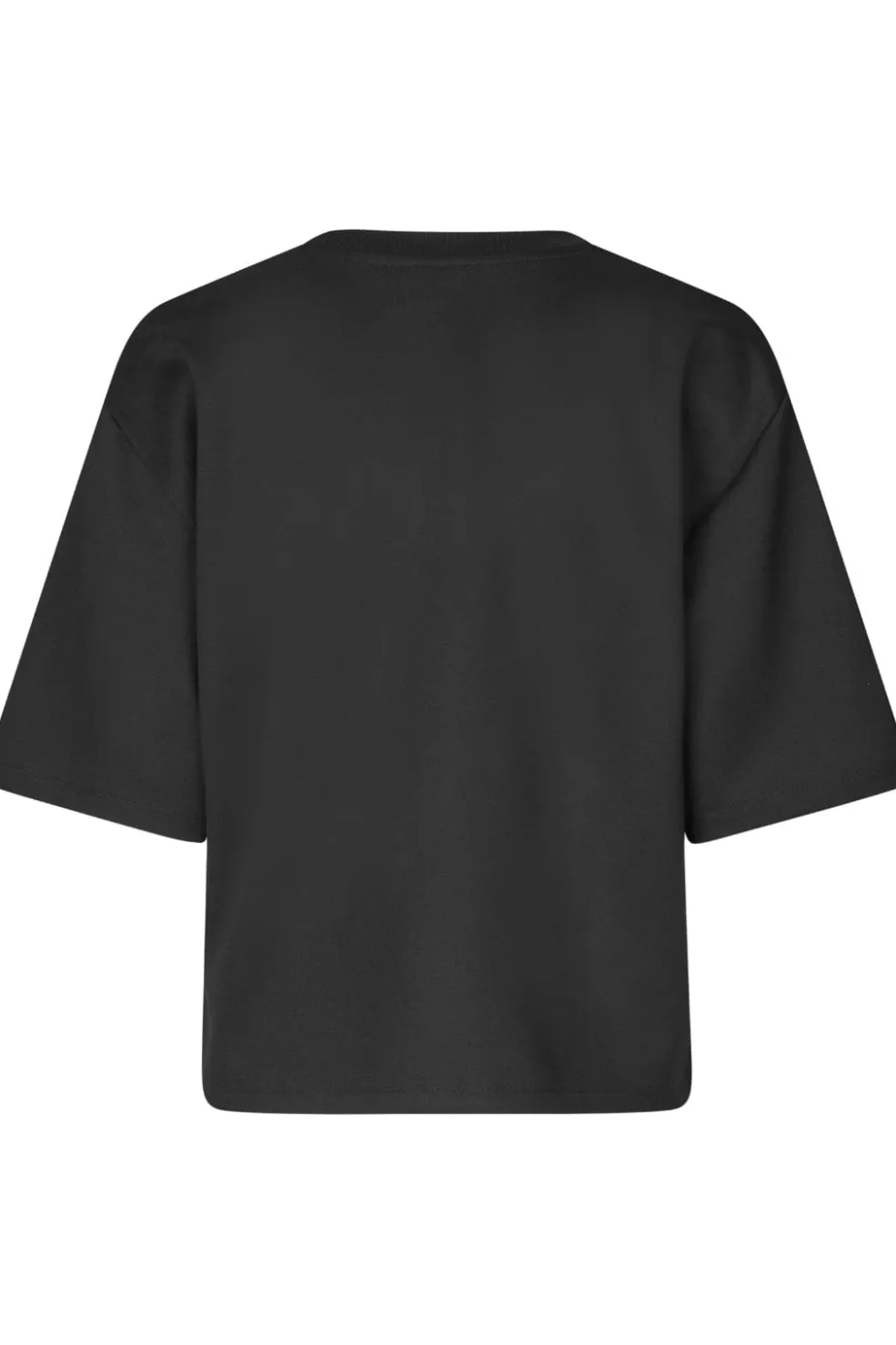 Sort t-shirt fra MbyM med rund halsudskæring og korte, brede ærmer. T-shirten har en enkel stil med rene linjer og et minimalistisk design.