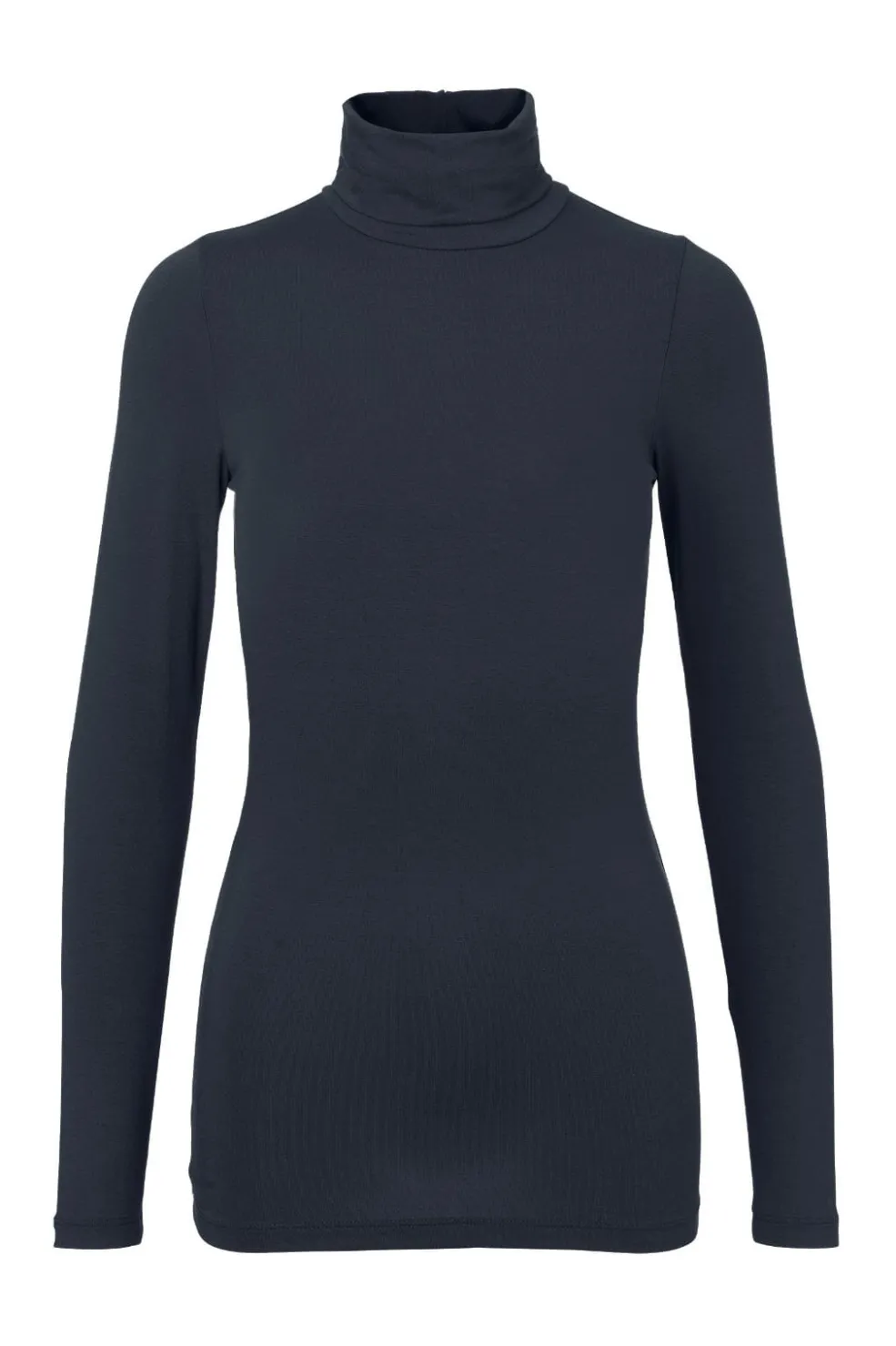 Mørkeblå rullekravebluse fra MbyM med lange ærmer. Blusen har en regular fit og er fremstillet i blødt modalmateriale med stretch.