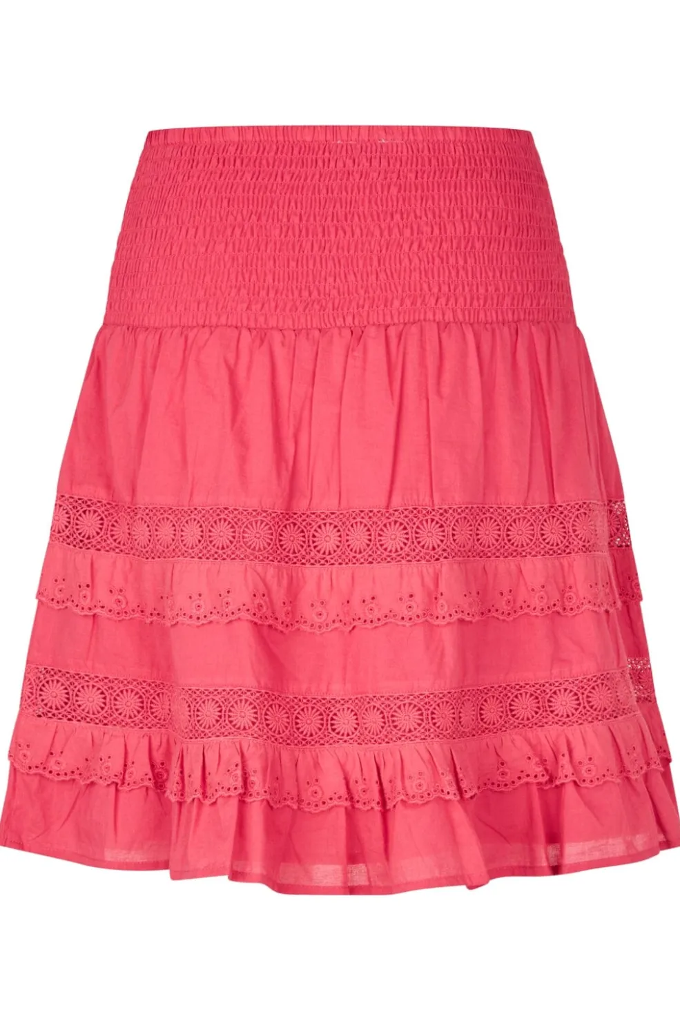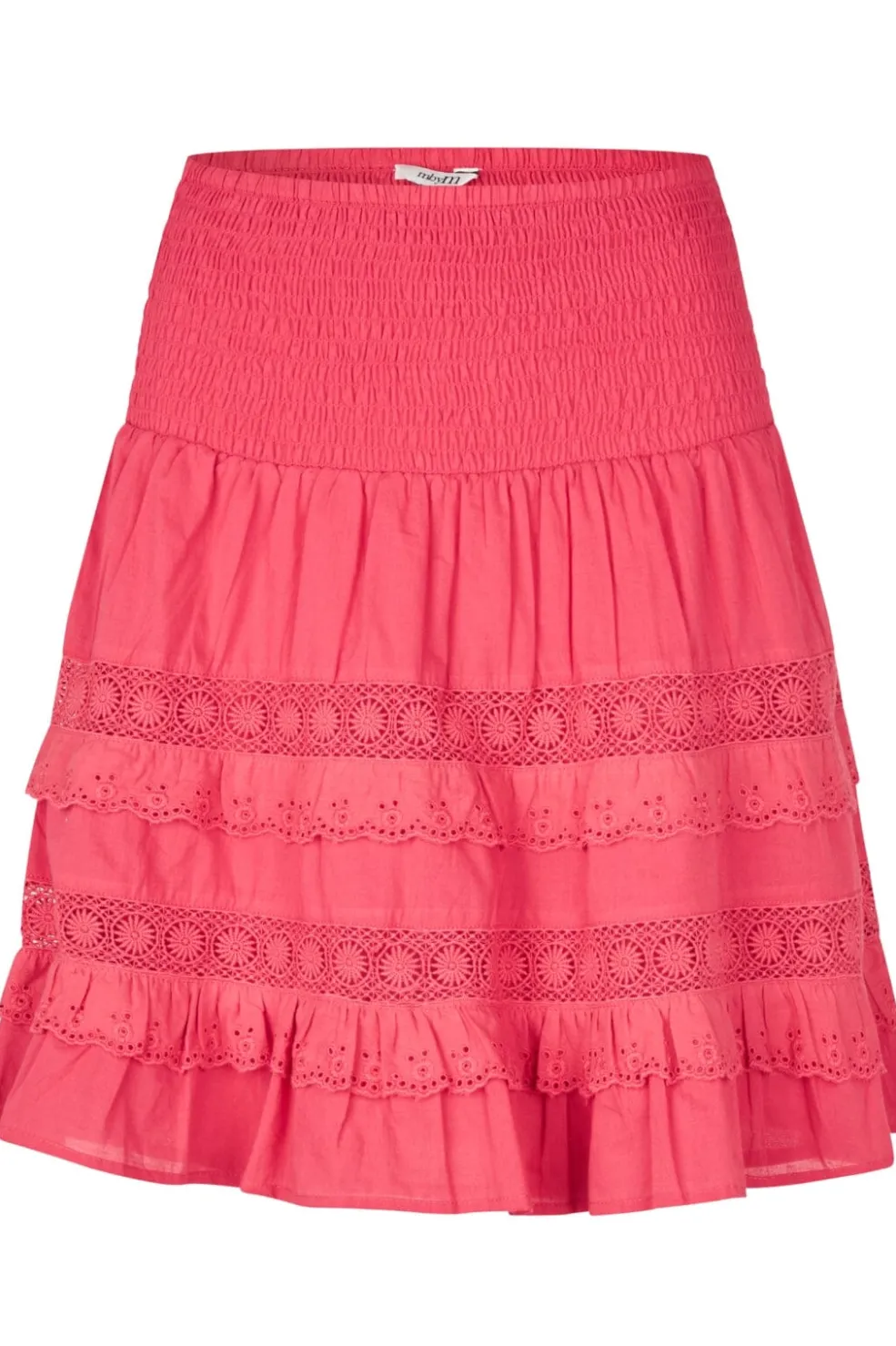 Rød nederdel fra MbyM med smocket talje. Nederdelen har flere lag med blondedetaljer og flæser, der giver et let og luftigt udtryk.